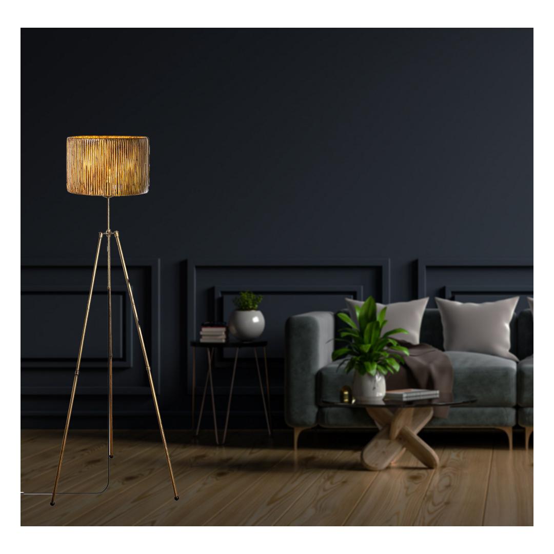 Valgustage oma ruumi elegantsi ja stiiliga meie kauni põrandalambiga. Selle lambi metallkorpus kiirgab rafineeritust, samas kui bambusekoopia kork lisab teie kodu sisustusele looduslikku ilu. Metalljalad tagavad stabiilsuse ja vastupidavuse, kindlustades, et see lamp on pikaajaline täiendus teie ruumile.