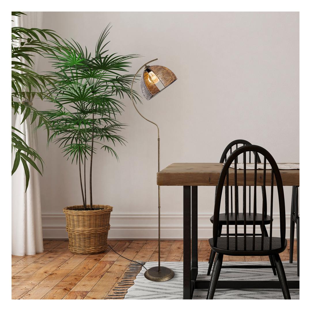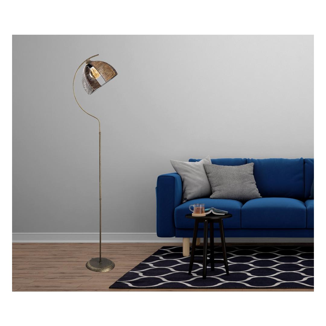 Selle põrandalambi soe antiikne värv loob igas ruumis hubase ja kutsuva atmosfääri. Olgu see teie elutoas, magamistoas või kontoris, see lamp tõstab koheselt teie ruumi välimust. Sleek metallkorpus lisab traditsioonilisele disainile modernse puudutuse, muutes selle mitmekülgseks osaks, mis sobib igasuguse sisustustootega.