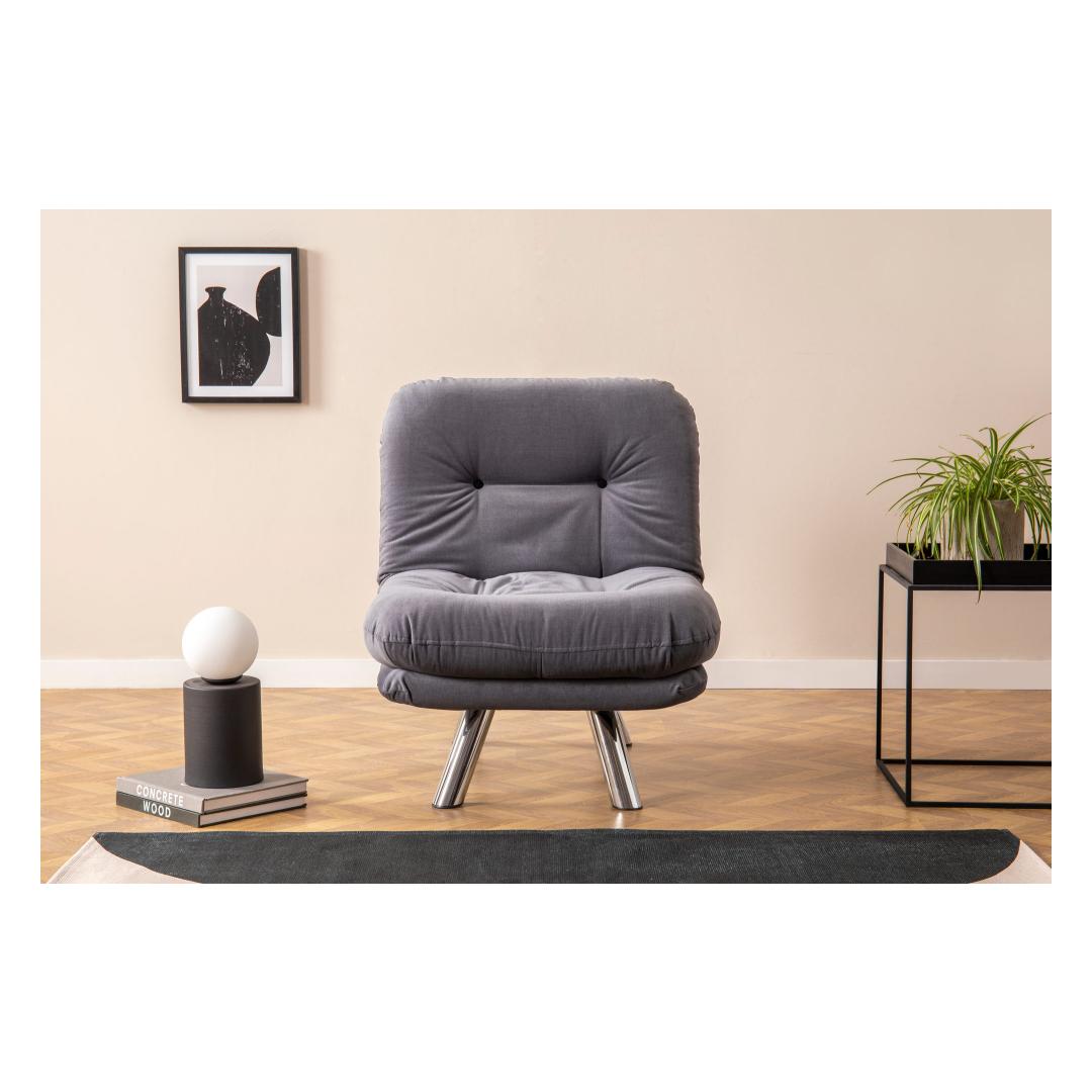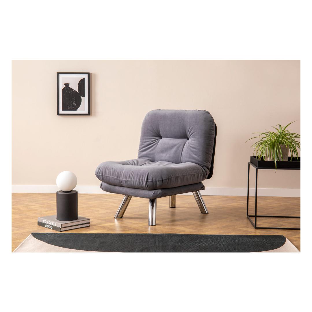 Ühevärviline hall lisab igasse tuppa elegantsi, mistõttu sobib see ideaalselt moodsasse ja skandinaavia inspiratsiooniga interjööri. Elegantne metallraam tagab vastupidavuse ja stabiilsuse, samas kui 400 g/m² silikoonkiust täidis pakub optimaalset tuge ja mugavust.
