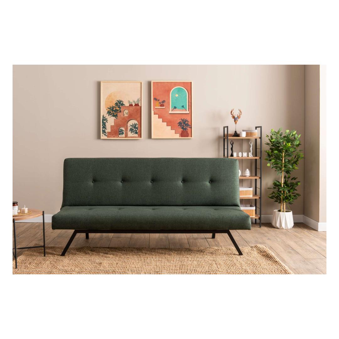 Muuda oma eluruum meie 3-kohalise diivanvoodiga, mis on valmistatud kaunilt rohelisest linast kangast. See mitmekülgne ese ei ole mitte ainult diivan, vaid ka mugav voodi sinu külalistele.