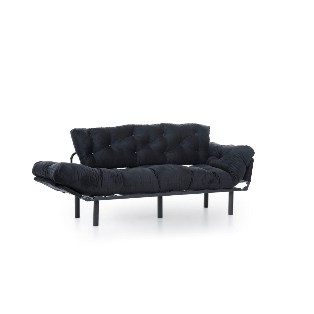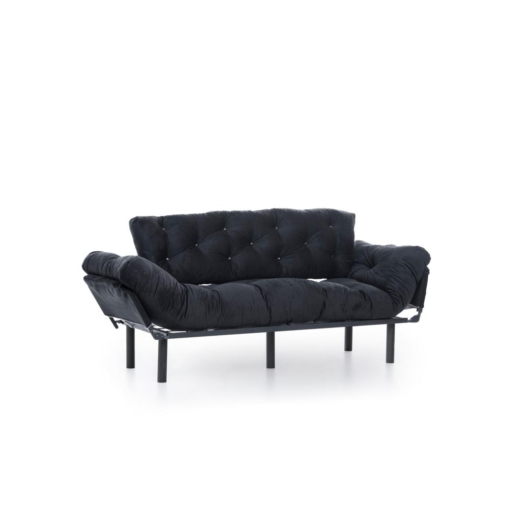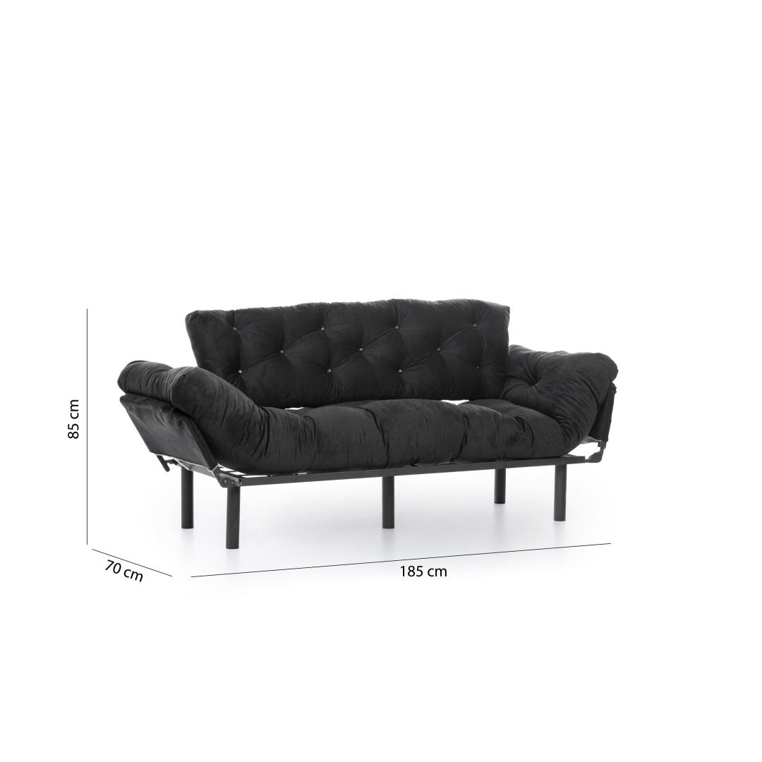 Oma soliidse musta värvi ja moodsa uudse kontseptsiooniga lisab see diivanvoodi vaevata igasse tuppa elegantsi. Selle tööstuslikust inspireeritud esteetika avaldab kindlasti muljet teie külalistele ja tõstab teie ruumi üldist atmosfääri.