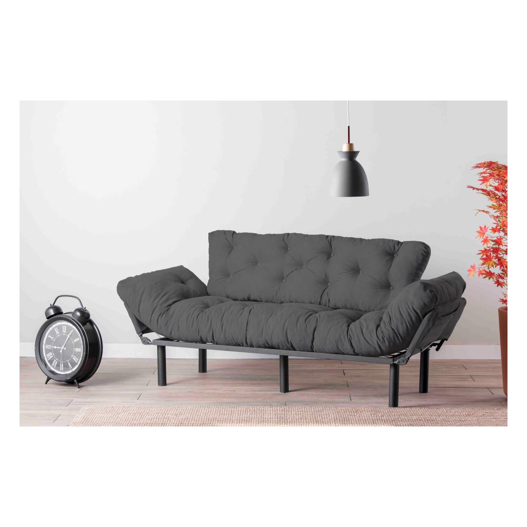 3-kohaline diivanvoodi on loodud teie mugavust silmas pidades, pakkudes 24 DNS vahtu nii istumis- kui seljatoe alal. 5-tasandilised reguleeritavad käetoed võimaldavad teil kohandada oma istumiskogemust, olgu te siis raamatu seltsis või sõpradega filmiõhtut korraldamas. Selle diivanvoodi kaasaegne ja tööstuslik disain tõstab esile iga ruumi välimust teie kodus.