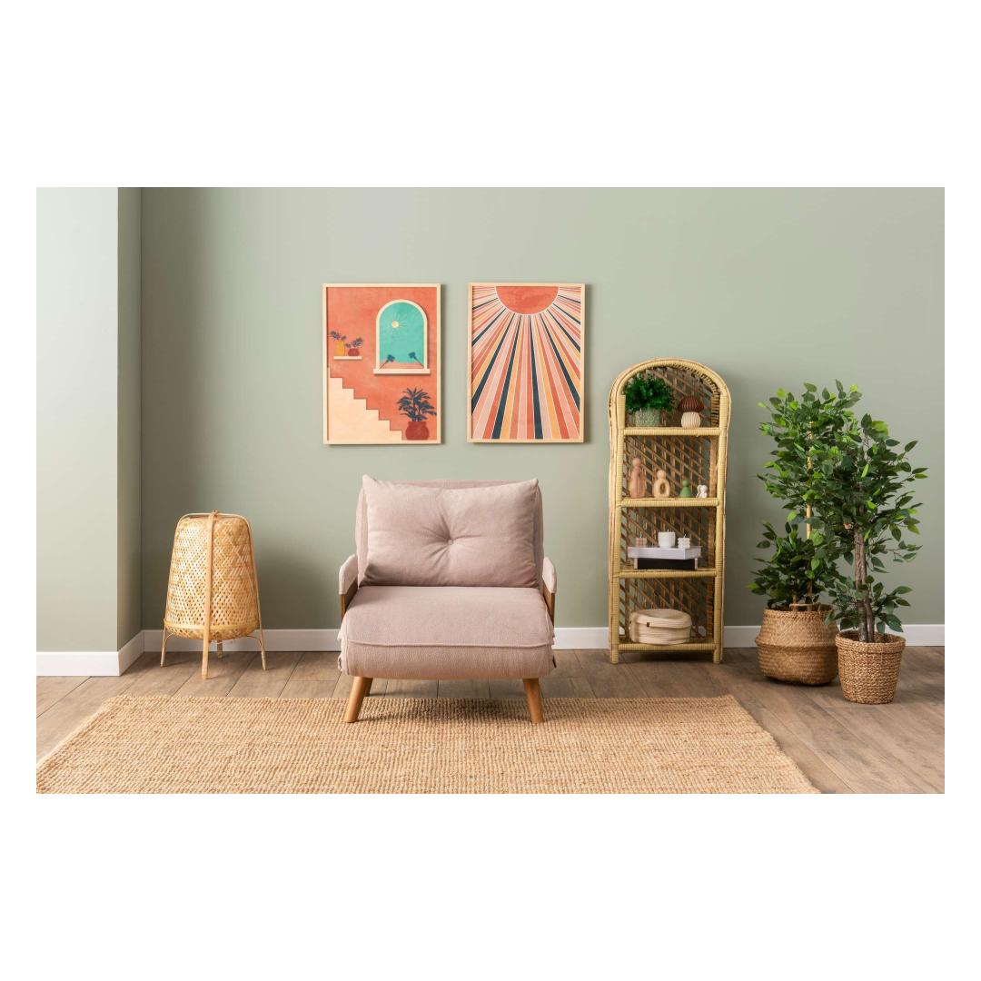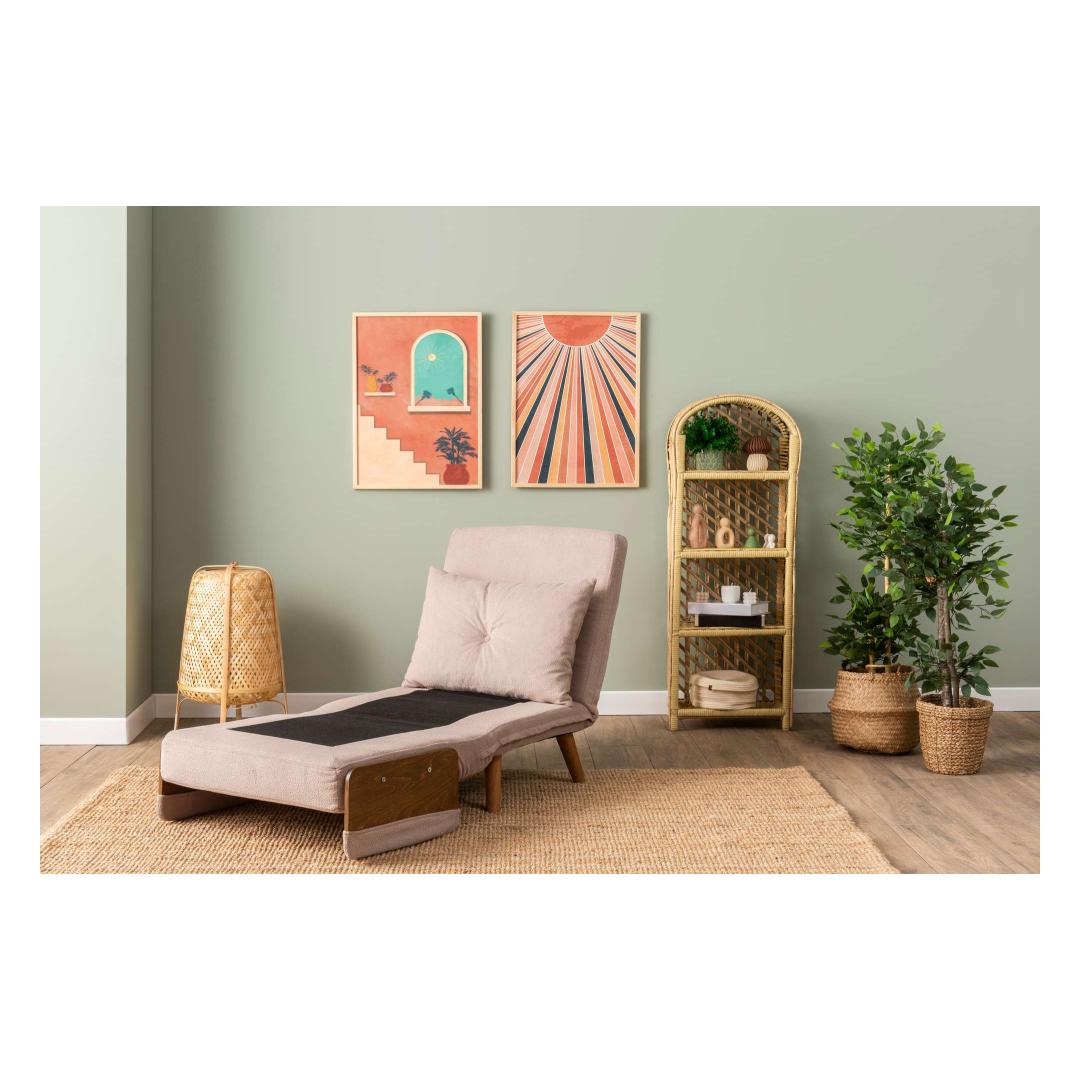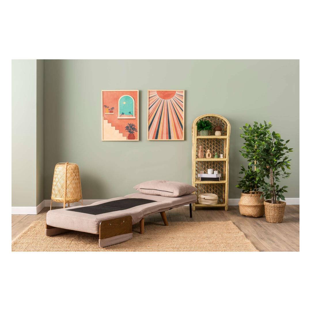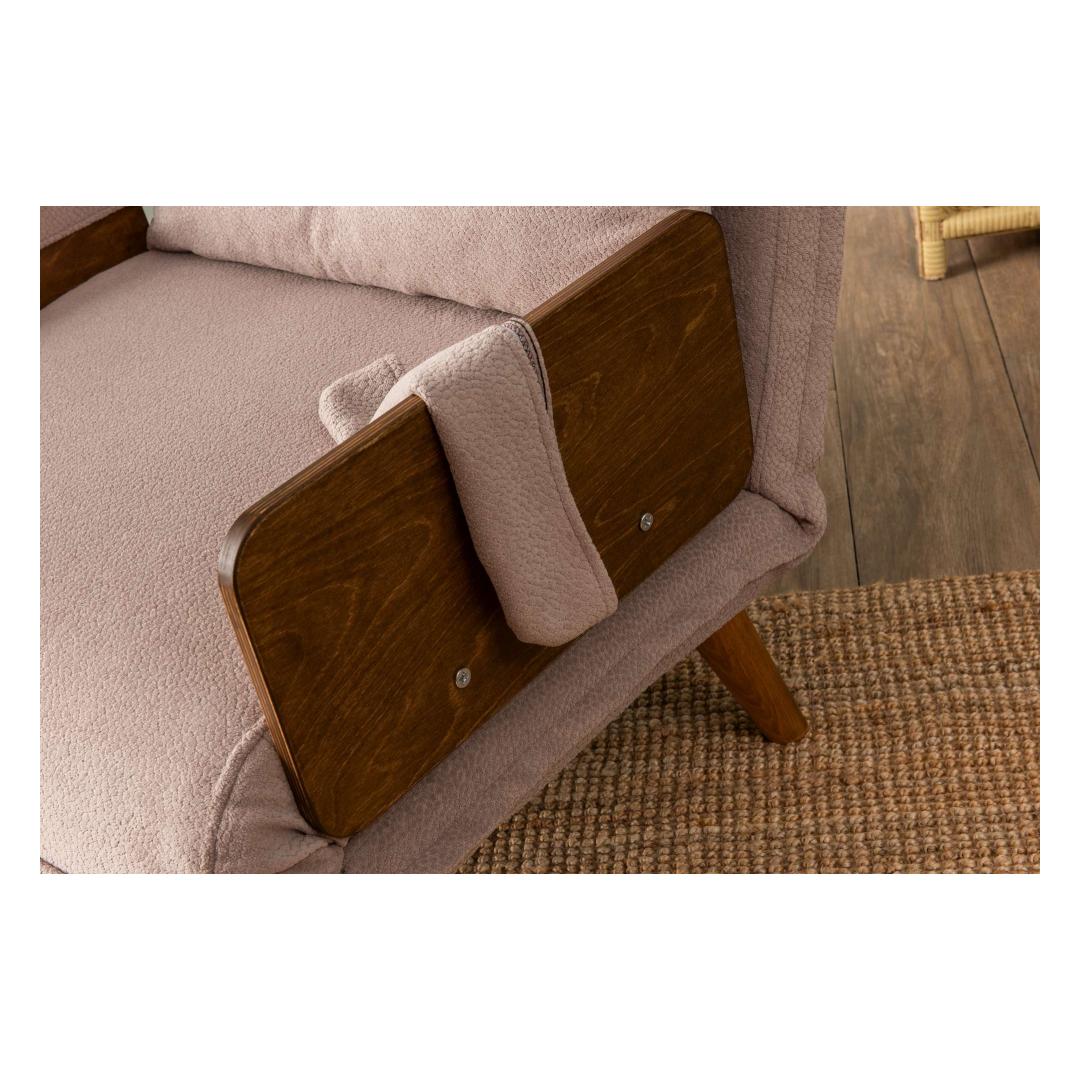 Elegantse metallraami ja puidust käetugedega valmistatud diivanvoodi kiirgab kaasaegset võlu, mis tõstab iga ruumi. 100% polüestrist kangas kaunis minki värvitoonis lisab sinu ruumile elegantsi. 14-tasandiline reguleeritav seljatoe mehhanism võimaldab sul kohandada istumiskogemust maksimaalse mugavuse saavutamiseks.