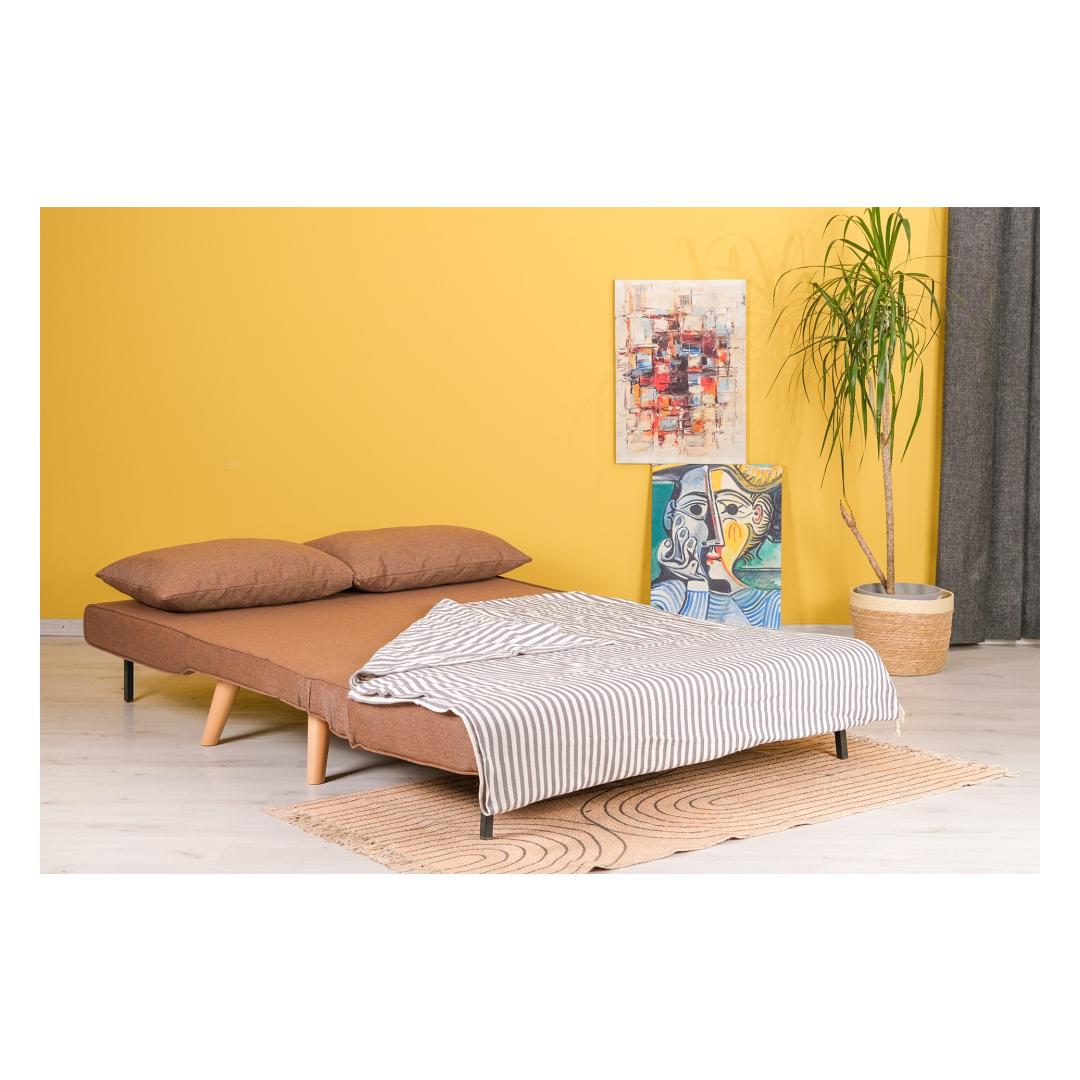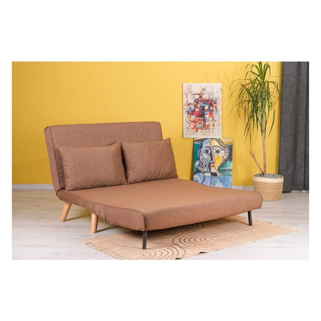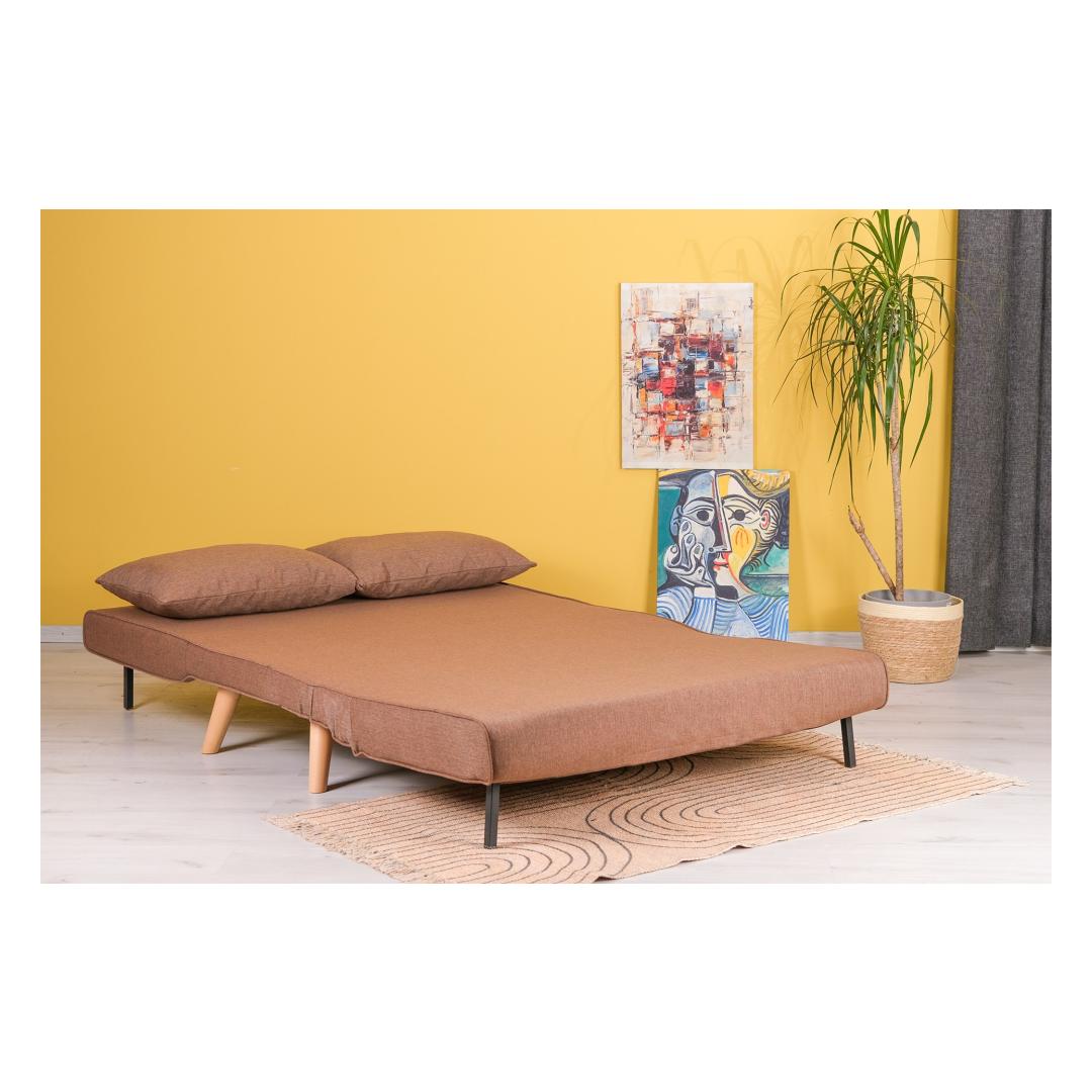 Selle sujuva pruuni värvi ja puidust jalgadega lisab see diivanvoodi igasse ruumi elegantsi. Kompaktne suurus teeb sellest ideaalse väikestesse ruumidesse, samas kui 120 x 180 cm voodi suurus pakub piisavalt ruumi rahulikuks ööuneks.