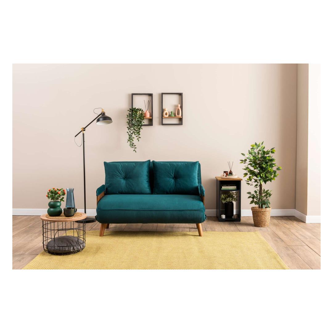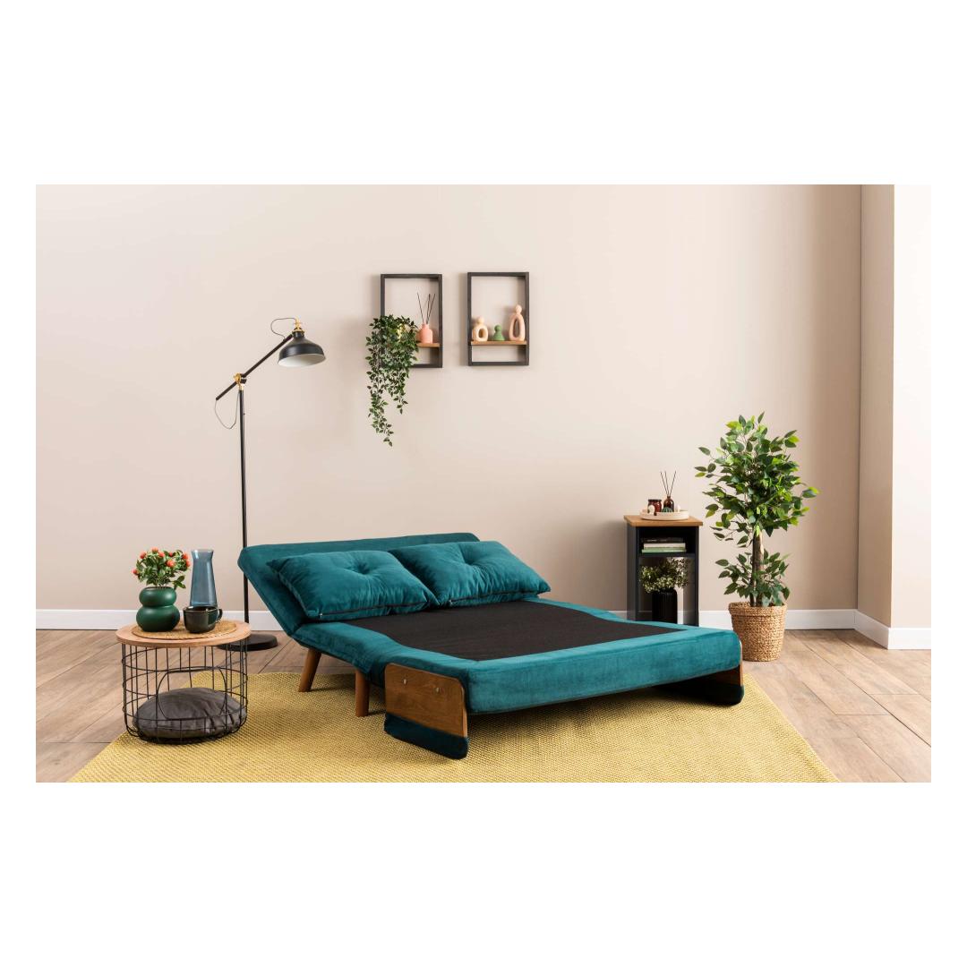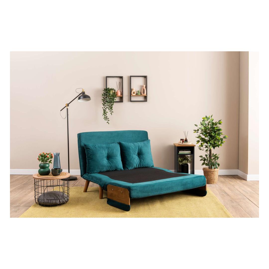 Muuda oma eluruum meie 2-kohalise diivanvoodiga, mis on kaunis petroolees rohelises värvitoonis. See mitmekülgne mööbliese ei ole mitte ainult diivan, vaid ka mugav voodi sinu külalistele või endale.
