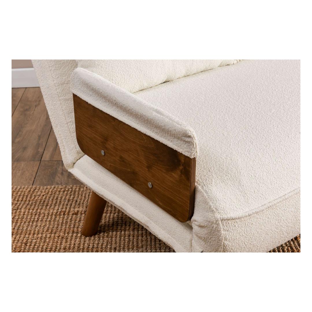 Stabiilne metallraam ja puidust käetuged pakuvad vastupidavust ja tuge, tagades, et see diivanvoodi kestab ajaproovile. Ühe istme disain pakub piisavalt ruumi lõõgastumiseks või magamiseks, muutes selle mitmekesise mööbliesemeks igas elutoas või külalistetoas.