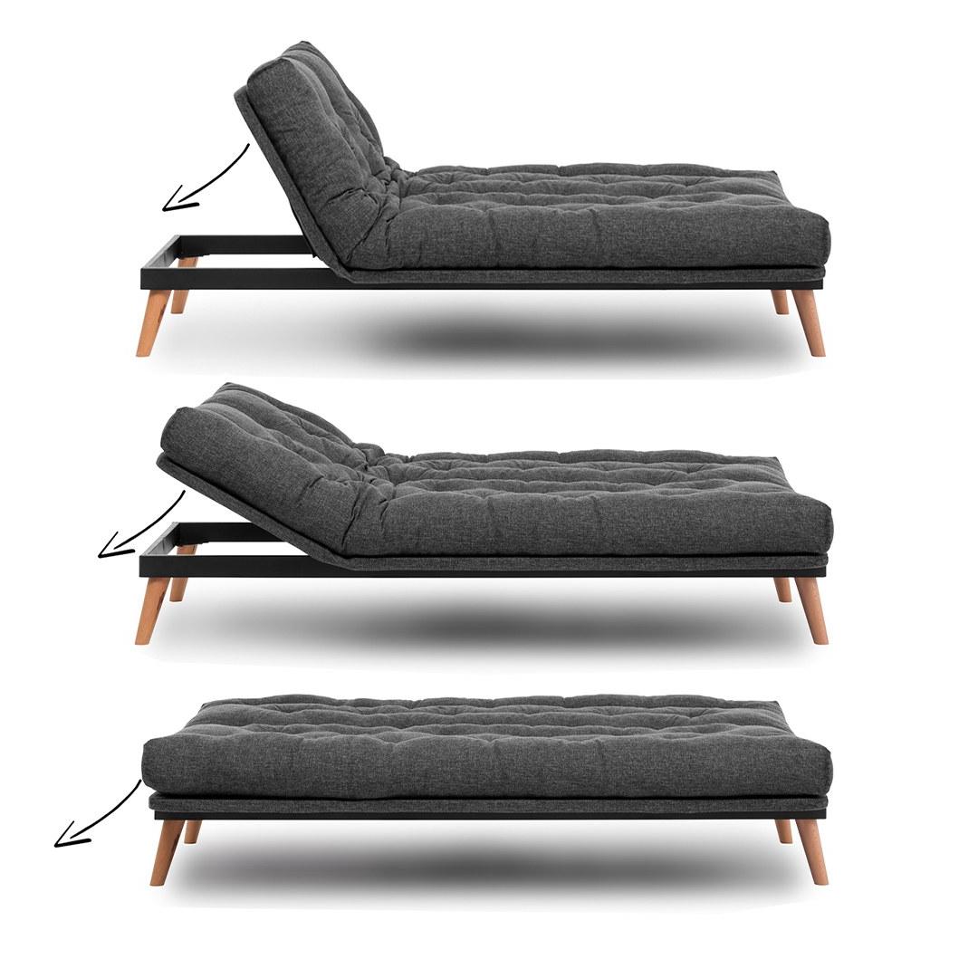 Meie diivanvoodit saab tänu 14-korruselisele reguleeritavale seljatoele hõlpsasti voodiks muuta, pakkudes teie külalistele mugavat magamispinda. Tugev %100 metallist raam tagab vastupidavuse ja stabiilsuse, samas kui naturaalsed puidust jalad lisavad elegantsi.