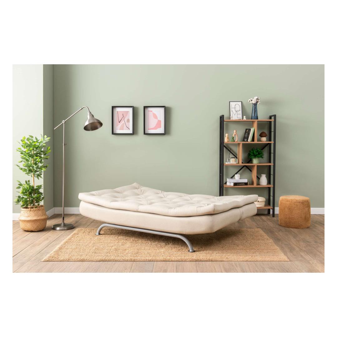 Diivanina mõõtmetega 63 cm x 185 cm x 82 cm ja voodina 115 x 185 cm, on see diivanvoodi ideaalne väikeste ruumide või külalistetubade jaoks. Puhastatav kangas muudab koristamise lihtsaks, samas kui metalljalad lisavad teie sisustusele modernset puudutust. Jalad saadetakse lahtivõetuna, et transport ja kokkupanek oleks lihtne.
