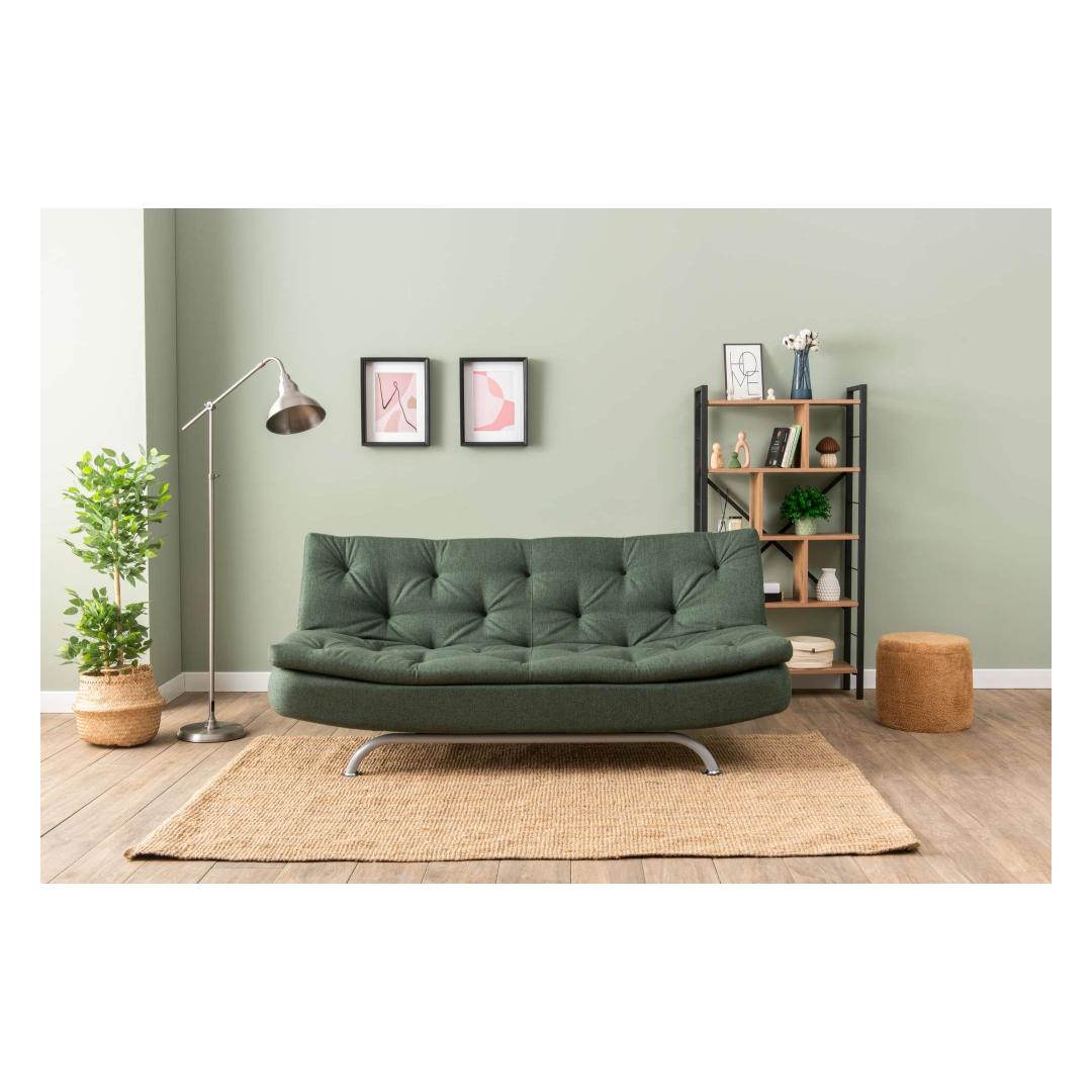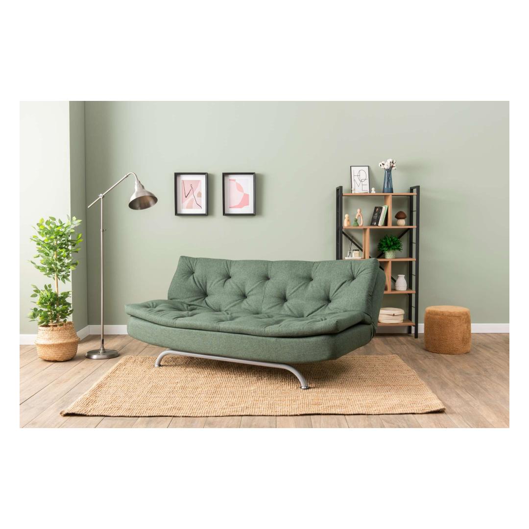 Muuda oma eluruum meie 3-kohalise diivanvoodiga, mis on kaunis rohelises toonis. See mitmekülgne ese ei ole mitte ainult diivan, vaid ka mugav voodi sinu külalistele.