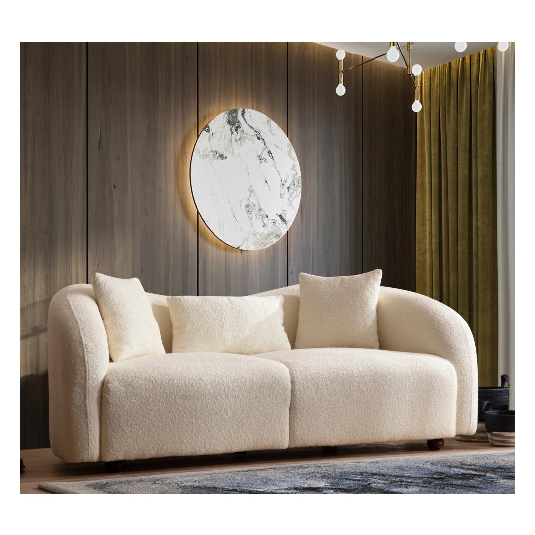 See diivan pakub tänu oma mahlastele padjadele ja ergonoomilisele disainile täiuslikku tasakaalu mugavuse ja toe vahel. Vajutage sügavatesse istmetesse ja kogege sellist lõõgastust, nagu kunagi varem. Luksuslik kreemikas kangas lisab igasse ruumi elegantsi, muutes selle teie kodu täiuslikuks keskpunktiks.