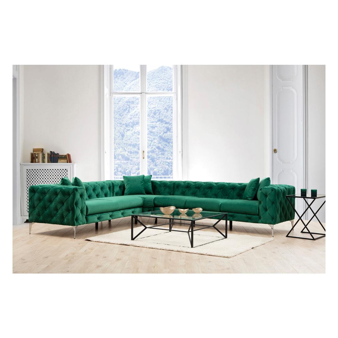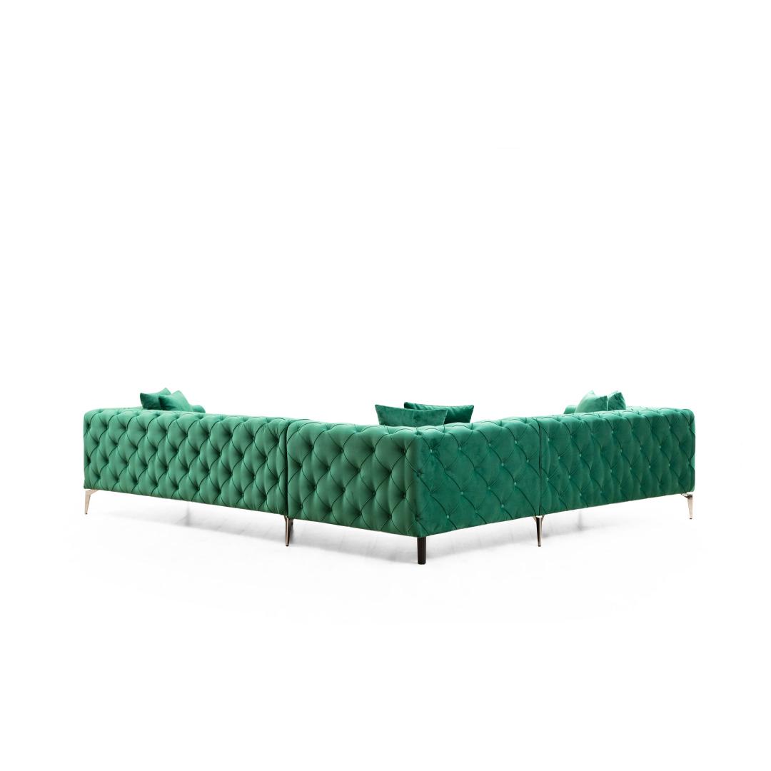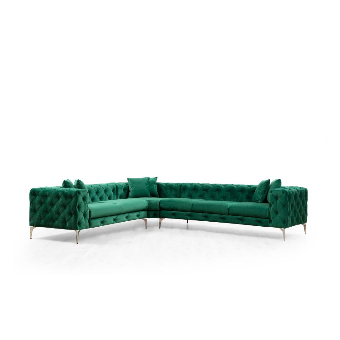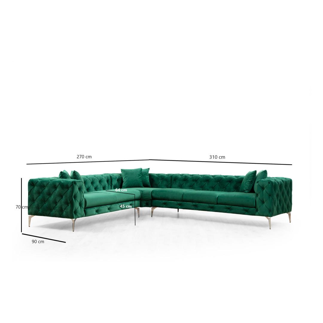 Meie nurgadiivan ei tähenda mitte ainult mugavust, vaid ka stiili. Oma soliidse rohelise värvi ja moodsa uudse disainiga lisab see igasse tuppa elegantsi. Selle diivani glamuurne välimus annab endast märku ja saab teie eluruumi keskpunktiks.