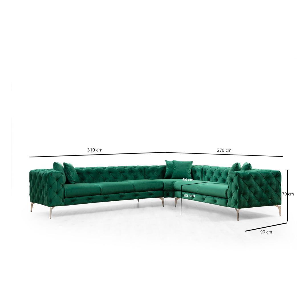 Nurgadiivaniga on kaasas 6 padja, mis lisavad teie elutuppa elegantsust ja elegantsust. Nopitud vahu ja silikoonvahu segu tagab mugava ja toetava istumiskogemuse.