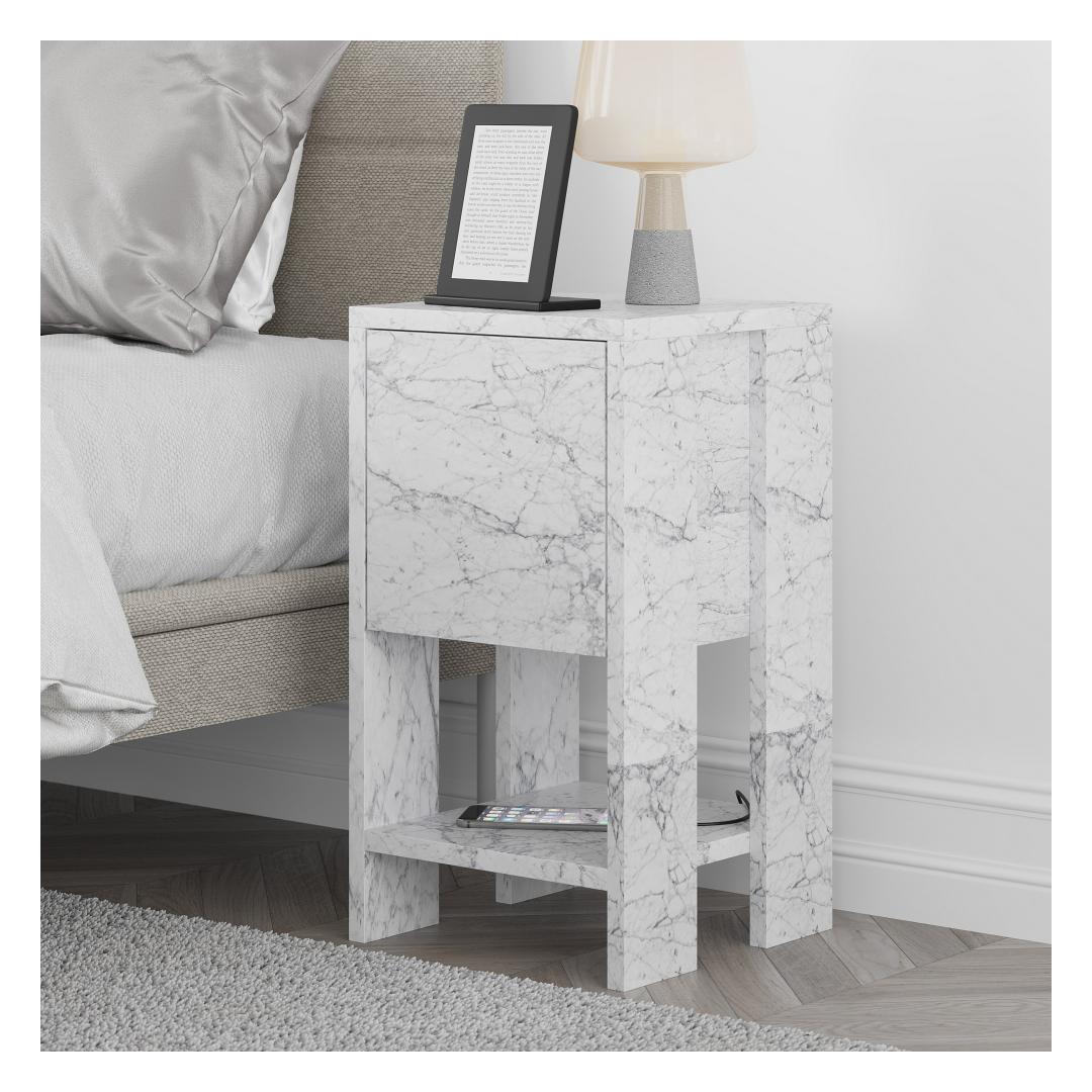 Ütle hüvasti igavale, vananenud mööblile ja tere öökapile, mis koheselt uuendab sinu magamistoa sisekujundust. Carrara marmorist viimistlus lisab elegantsi ja luksust, muutes selle öökapi kohustuslikuks igaühele, kes soovib luua šiki ja stiilset magamistuba.