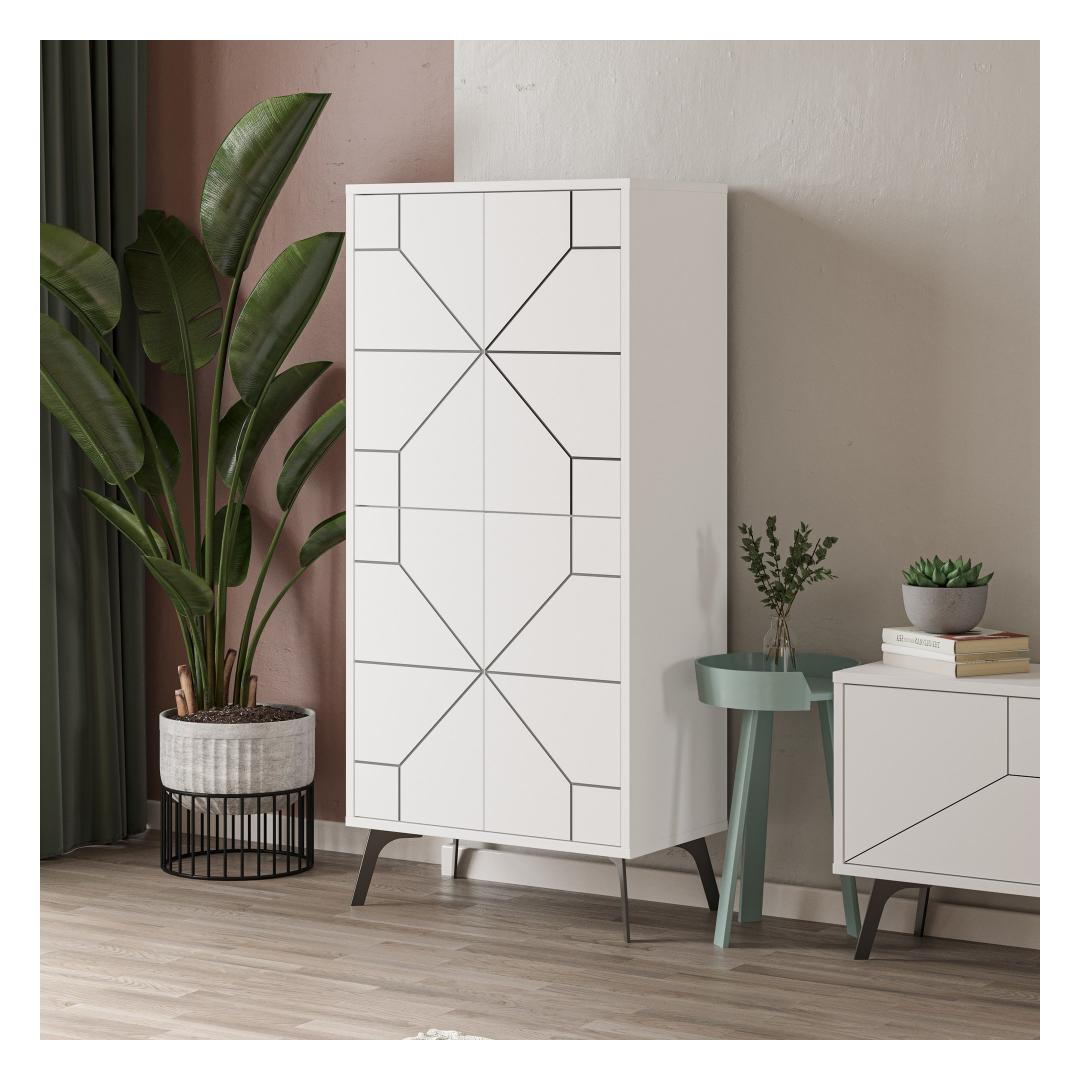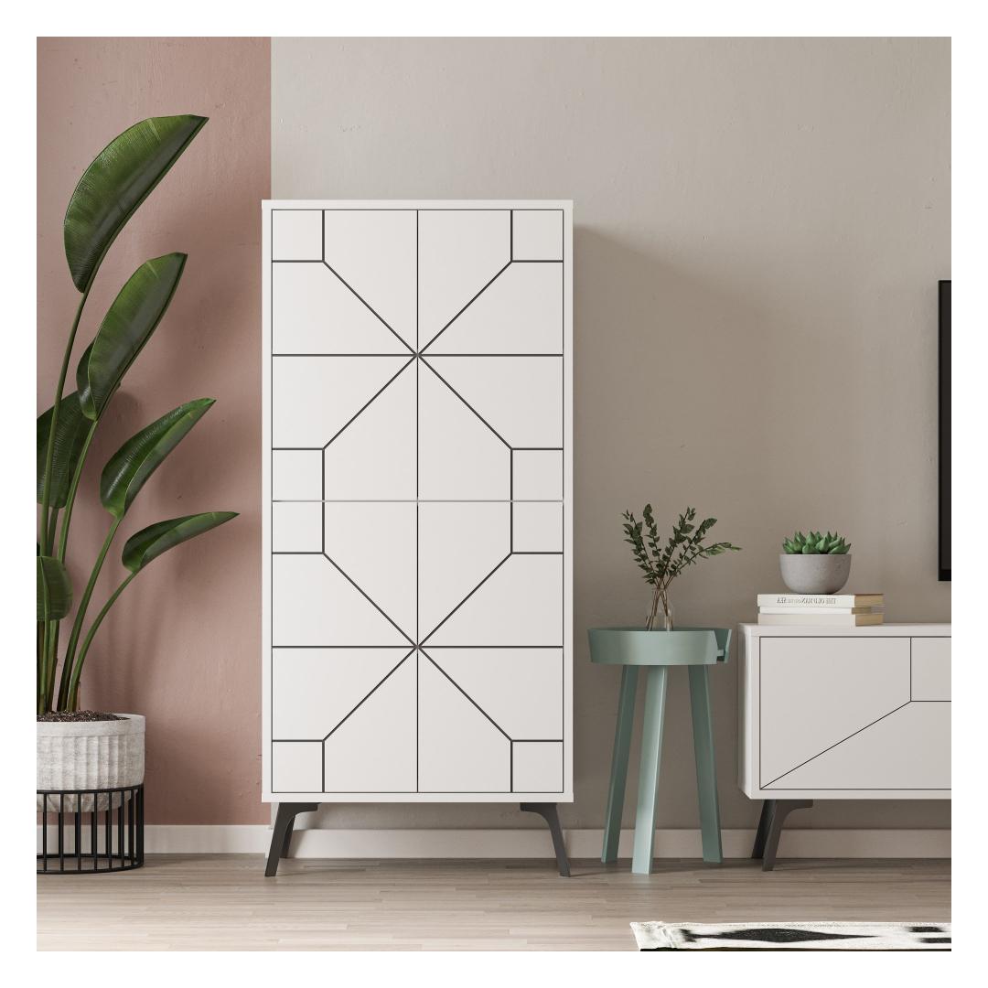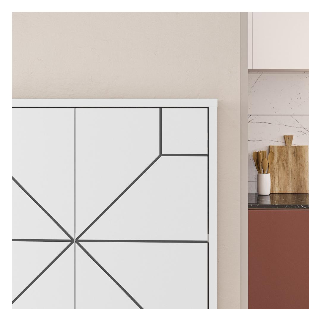 Meie mitmeotstarbeline kapp ei paku mitte ainult praktilisust, vaid lisab teie ruumile ka elegantsi. Kerge ja moodne disain koos karge valge värviga täiendab vaevata iga sisustust. Olenemata sellest, kas paigutate selle elutuppa, magamistuppa või kontorisse, tõstab see kapi koheselt teie ruumi esteetikat.