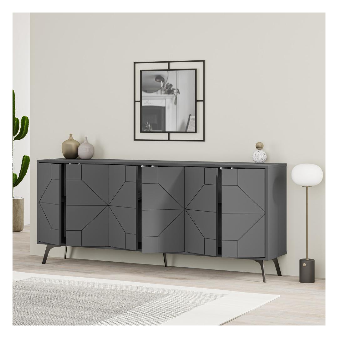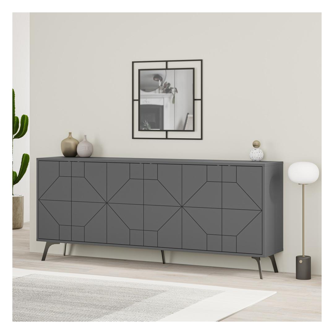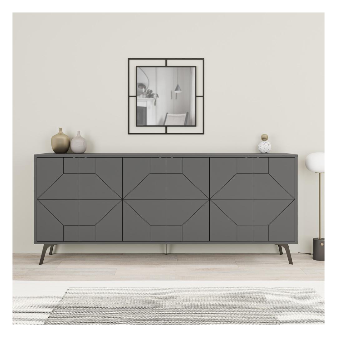 Laiusega 183. 8cm, kõrgus 77. 4cm ja sügavus 35cm, pakub meie antratsiitne konsool piisavalt hoiuruumi, ilma et see teie ruumi üle jõuaks. Selle kompaktne, kuid samas ruumikas disain võimaldab teil oma asju kenasti korraldada, säilitades samal ajal segadusteta keskkonna.