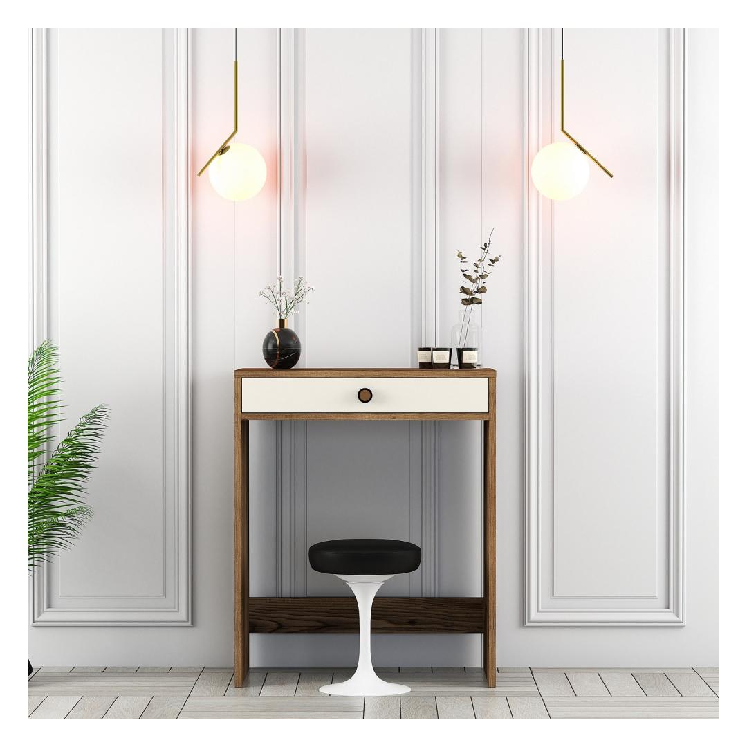 Astuge meie meigilaua abil ajatu ilu maailma. Pähklipuu- ja kreemikat värvi kombinatsioon loob uimastava esteetika, mis tõstab iga ruumi atmosfääri. Elegantne disain ja peen käsitöö teevad sellest lauast tõelise kunstiteose, mis lisab teie ruumile rafineeritust.