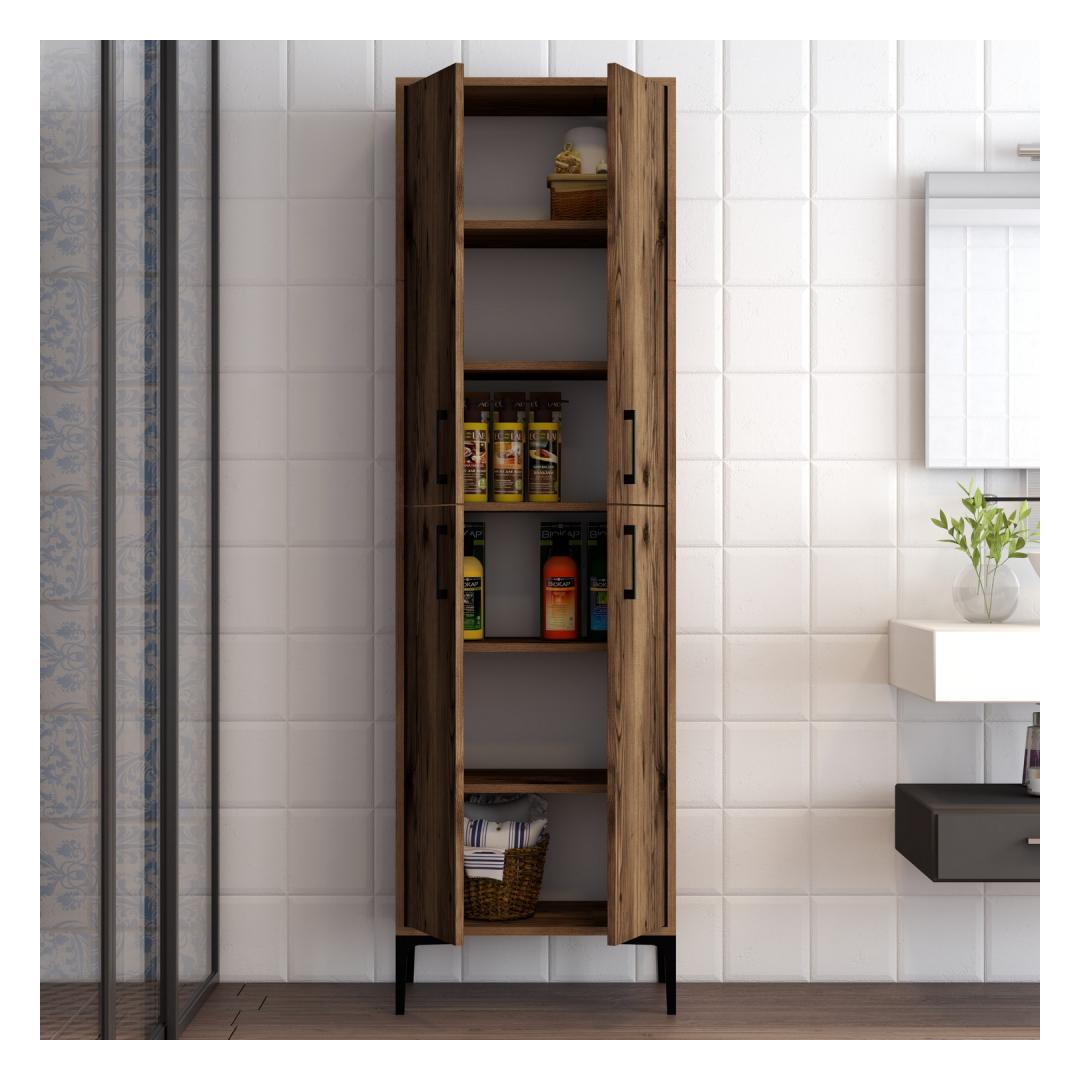 Valmistatud 100% melamiiniga kaetud puitlaastplaadist, mille paksus on 18 mm, on see kapp valmistatud kestma. Metallist jalg, käepide ja riputusklamber lisavad rafineeritust, pakkudes samal ajal lisastabiilsust ja tuge.