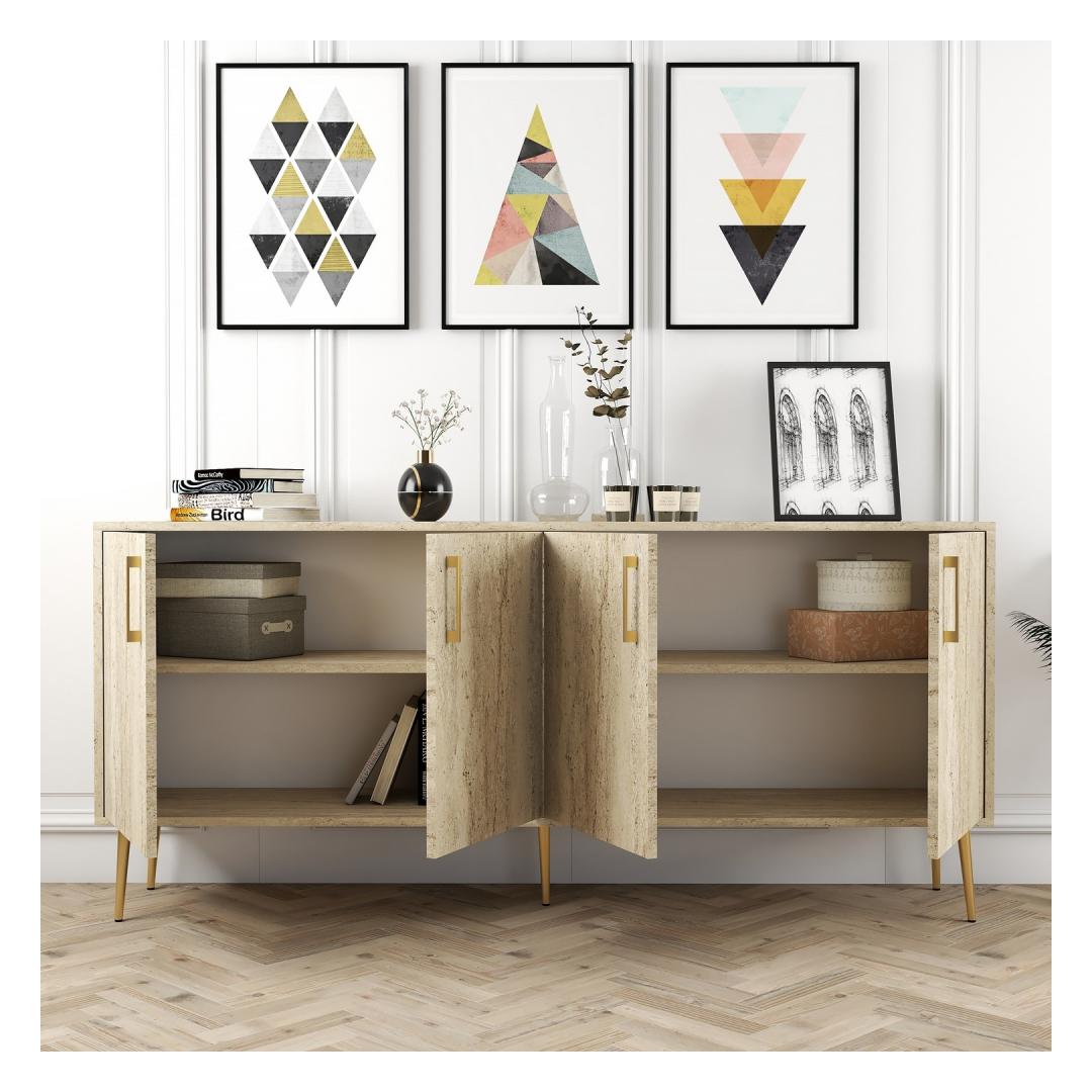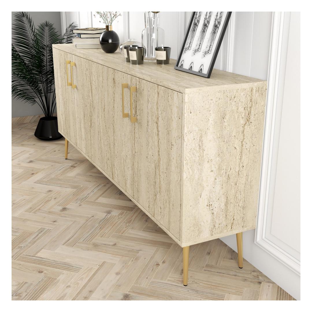 Kujutage ette, et kõnnite oma elutuppa ja seda tervitab see ilus konsool, selle klanitud jooned ja travertiinvärv, lisades teie kaunistusele pisut glamuuri. Ükskõik, kas paigutate selle oma sissepääsu, elutuppa või magamistuppa, saab sellest konsoolist ruumi keskpunktiks, tuginedes komplimentidele kõigilt, kes seda näevad.