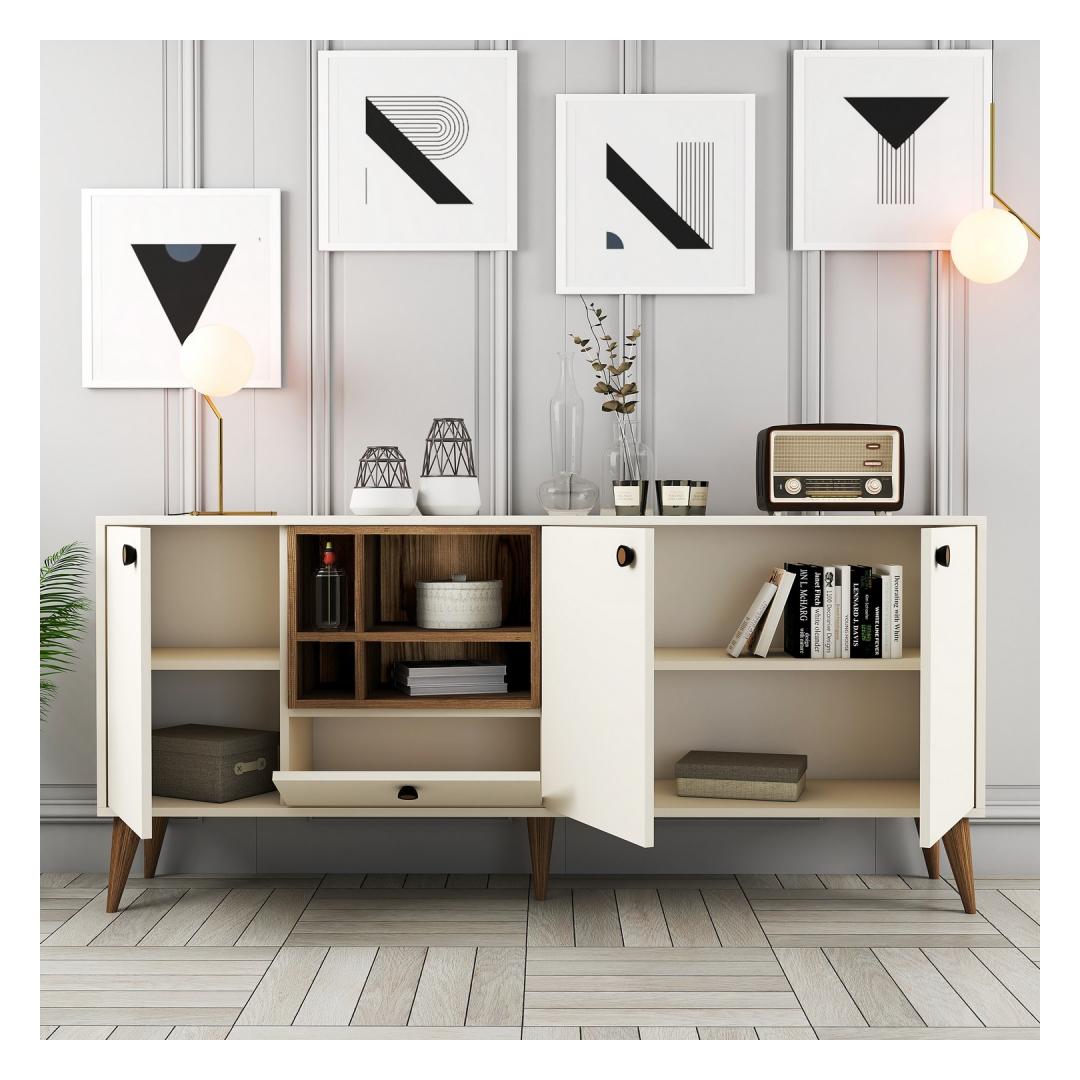 Meie konsool on elegantse ja moodsa disainiga, mis täiendab vaevata mis tahes interjööri stiili. Kreemjas värv lisab teie eluruumile elegantsi ja elegantsi, luues sooja ja kutsuva atmosfääri.