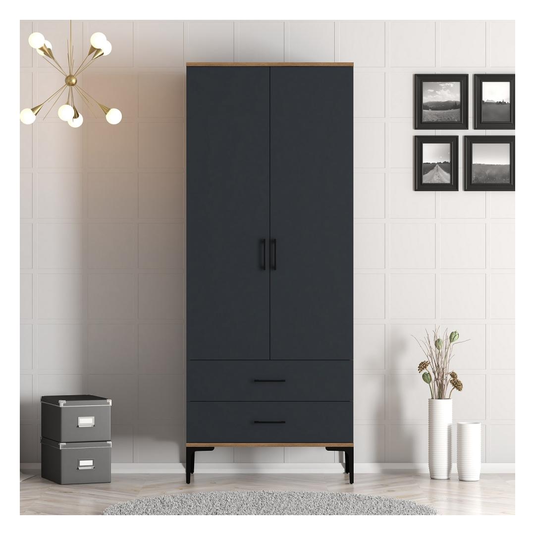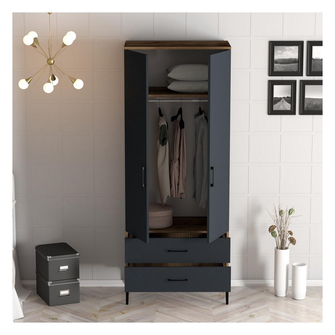 Kujuta ette, et astud oma magamistuppa ja näed, et kõik on korralikult organiseeritud selles kaunis riidekapis. Laius 80 cm, kõrgus 201,4 cm ja sügavus 47,5 cm pakuvad piisavalt hoiuruumi kõigi sinu riiete, kingade ja aksessuaaride jaoks. Pähkli- ja antriitvärvid lisavad sinu sisustusele modernset puudutust, muutes selle ideaalseks lisandiks igasse koju.