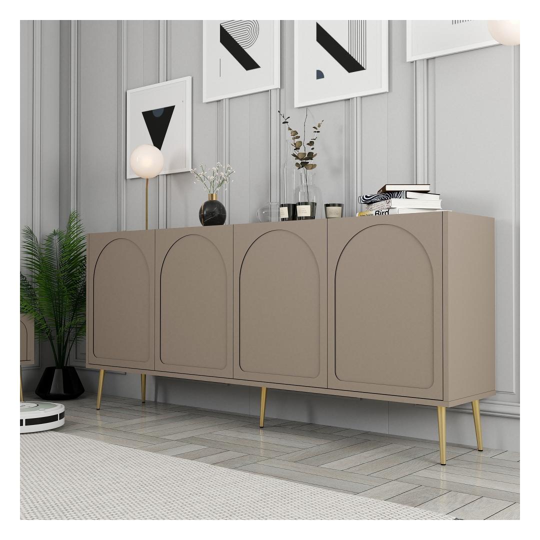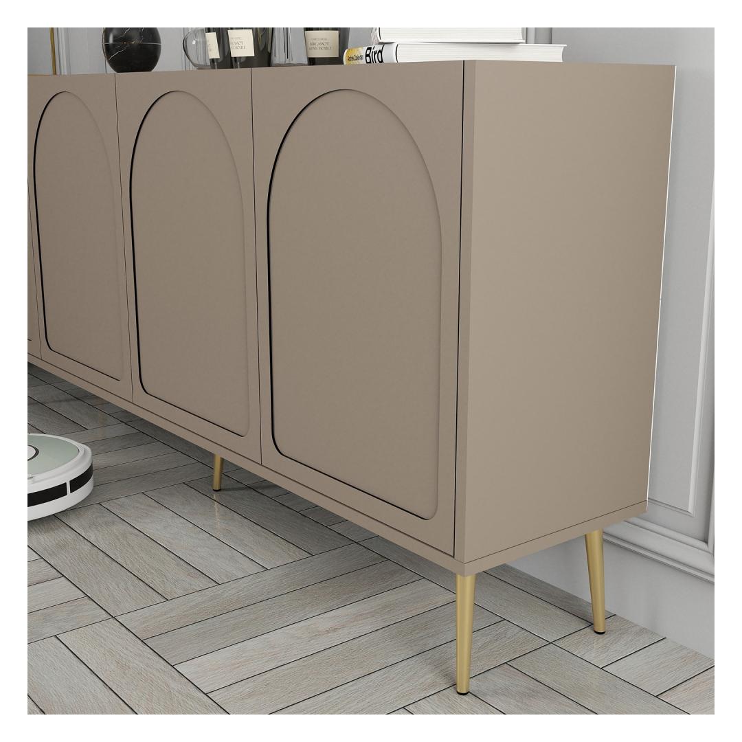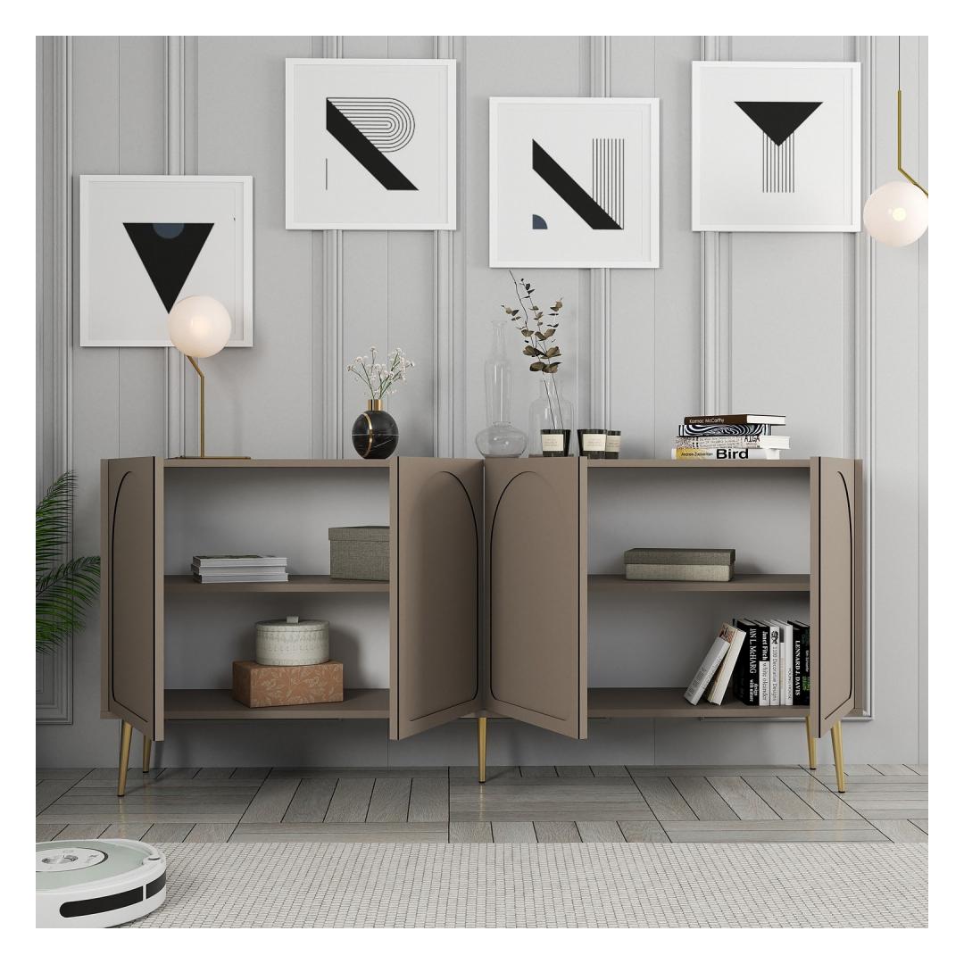 Muuda oma eluruum meie uimastava konsooliga, mis on valmistatud 100% melamiiniga kaetud puitlaastplaadist. Stiilne disain ning atlase ja kulla elegantne värvikombinatsioon lisab igasse ruumi elegantset elegantsust.