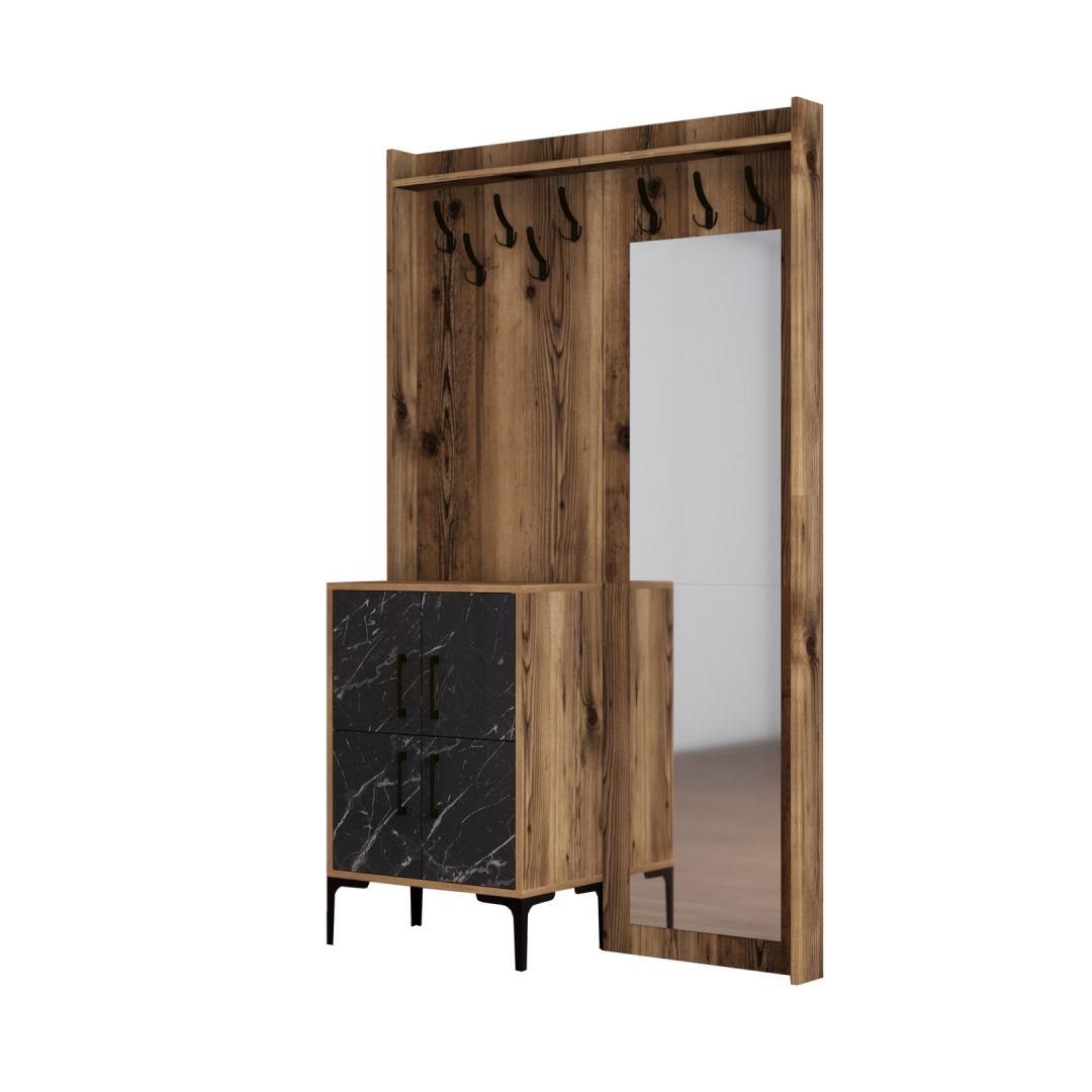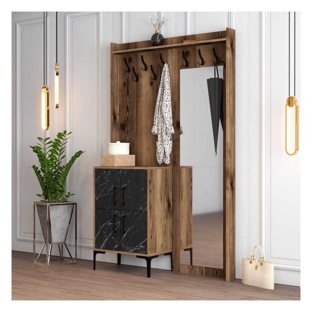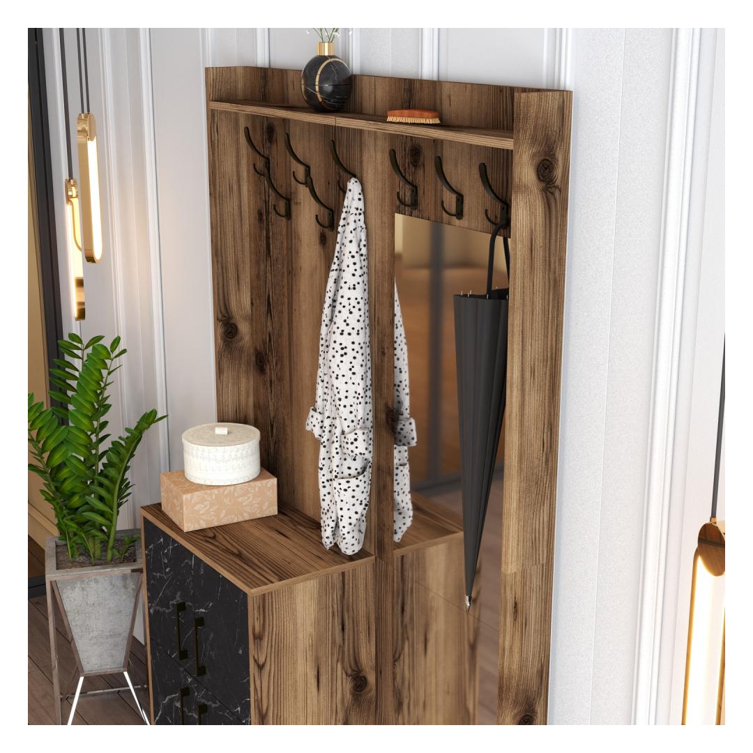 Pähklipuu ja musta värvi kombinatsioon loob silmatorkava kontrasti, mis lisab teie koridorile elegantsi.