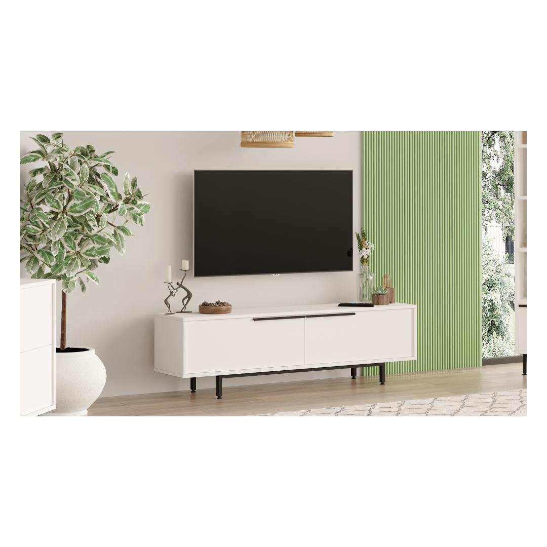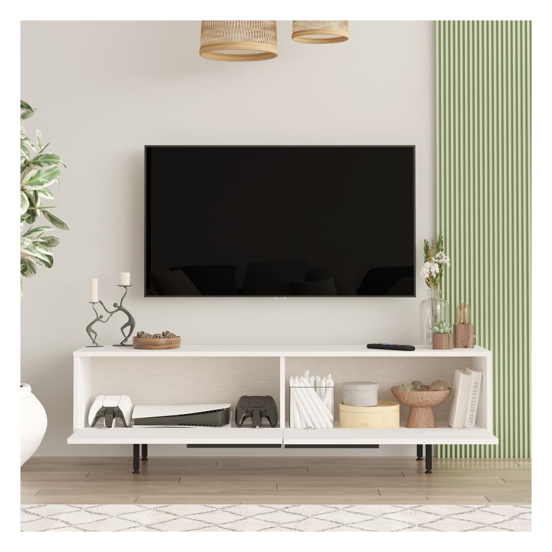 Teleri statiiv on saadaval uimastava valge värviga, mis õhkab elegantsust ja elegantsust. Selle neutraalne toon sulandub vaevata mis tahes olemasoleva sisustusega, võimaldades teil luua harmoonilise ja visuaalselt atraktiivse eluruumi.