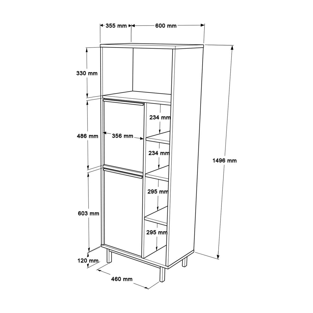 Width: 60 cm Height: 161,6 cm Depth: 35,5 cm