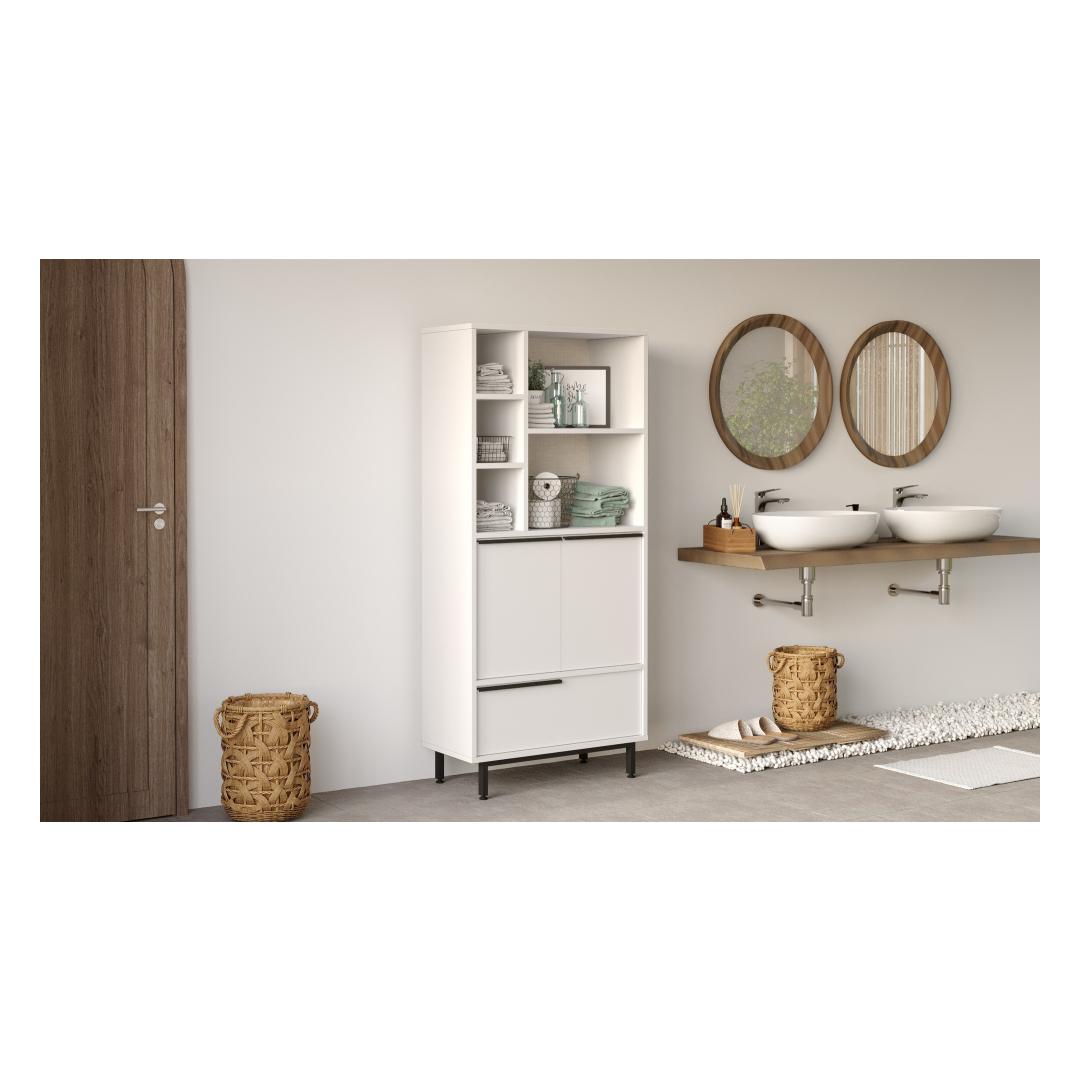 Selle elegantse ja moodsa disainiga kapp suurendab vaevata teie vannitoa esteetilist atraktiivsust. Karge valge värvus lisab elegantsi, luues rahulikku ja kutsuvat atmosfääri. Avar sisemus pakub piisavalt ruumi kõigi teie vannitoa tarvikute jaoks, hoides teie ruumi korrastatuna ja segadustevabana.