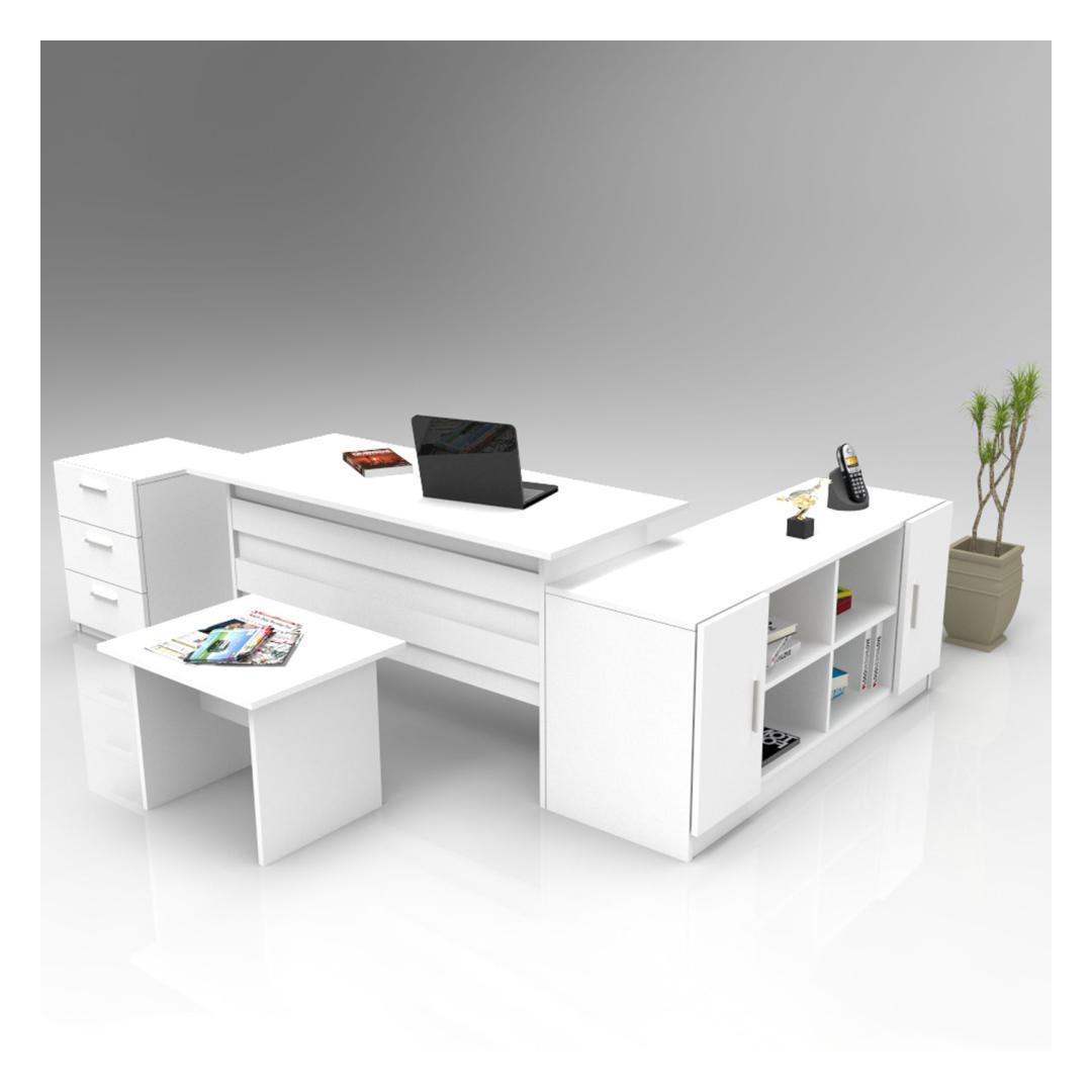 Mööblikomplekti valge värvus lisab teie kontorisse rahu ja rahulikkust, luues harmoonilise ja rahuliku keskkonna. See kaasaegne ja uudne kontseptsioon avaldab teie klientidele muljet ja inspireerib teie töös loovust.