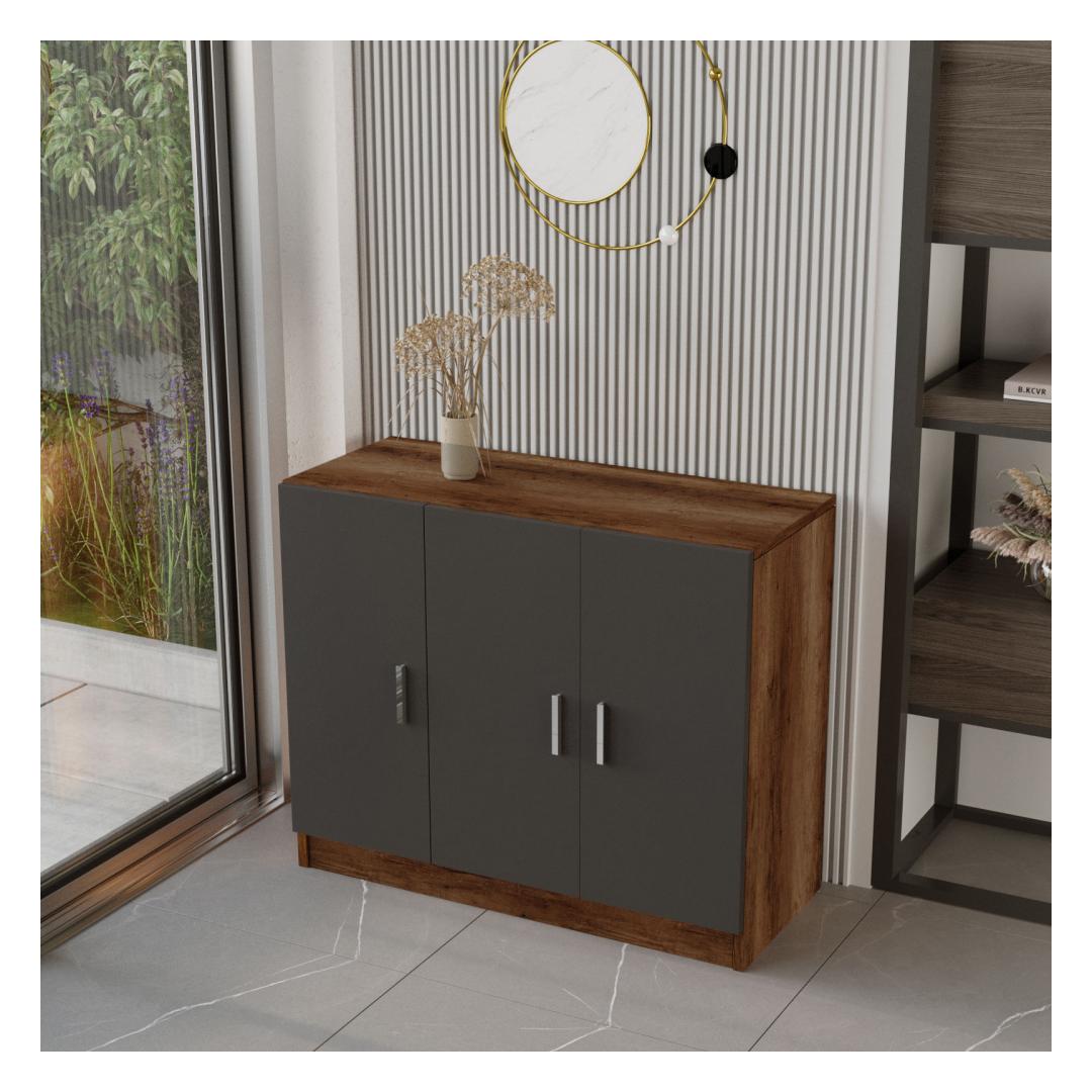 See 100% melamiiniga kaetud puitlaastplaadist valmistatud mööblikomplekt on valmistatud kestma. 18 mm paksus tagab erakordse tugevuse ja stabiilsuse, mis võimaldab teil kindlalt töötada. Pähklipuu ja antratsiidi värvid lisavad teie kontoriruumi elegantsust ja elegantsust.