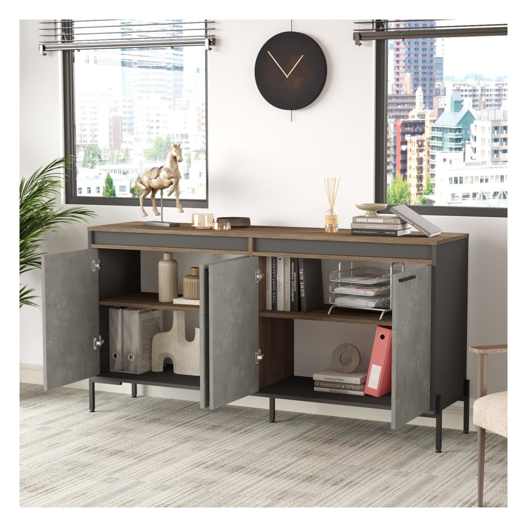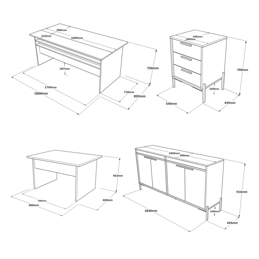 Noorte toa komplekt sisaldab kirjutuslauda, lauda, sahtlit ja küljepaneeli, mis on kõik hoolikalt kujundatud vastavalt teie lapse vajadustele. Elegantne ja moodne disain koos hõbedase ja antratsiidi värvipaletiga lisab elegantsi igale toa sisustusele.