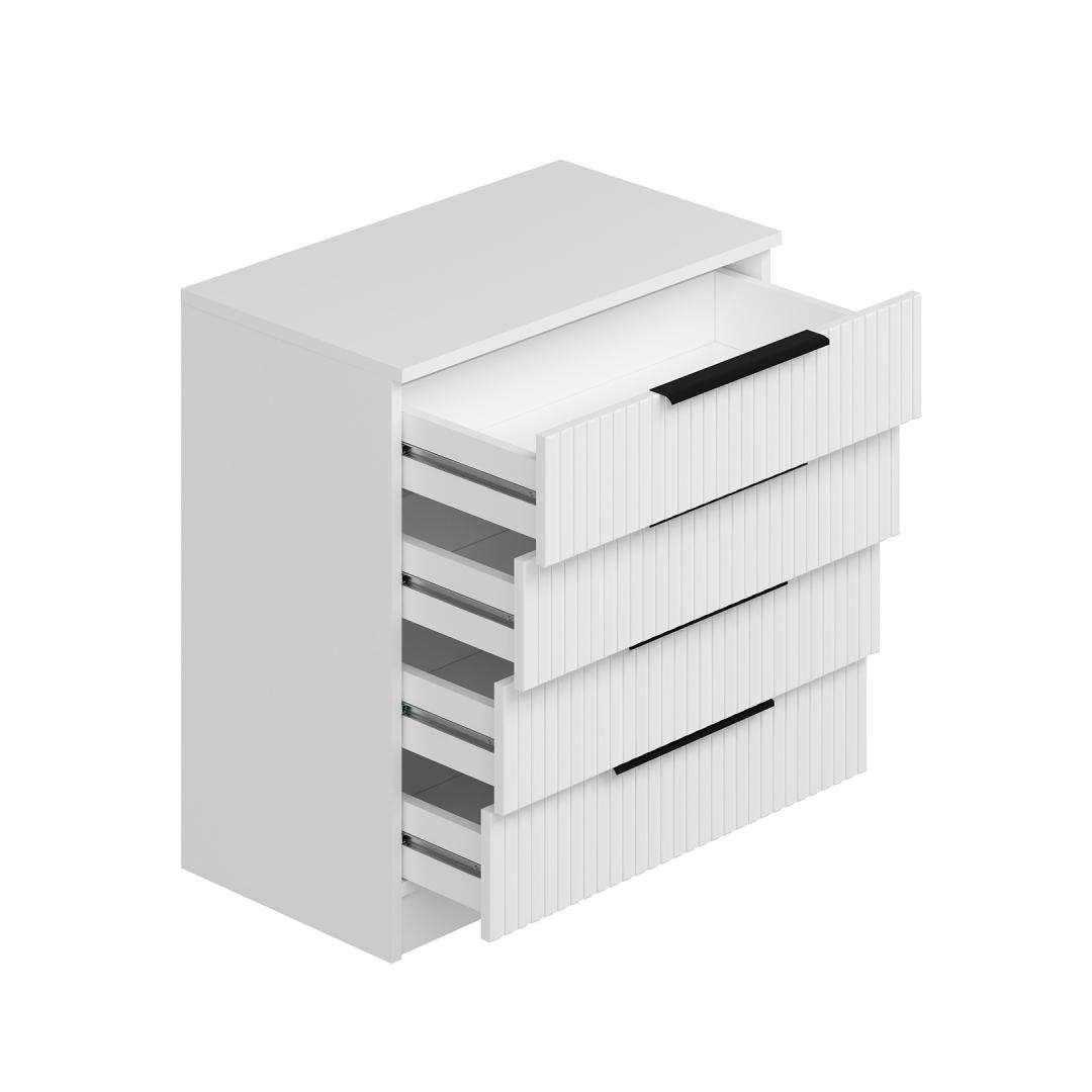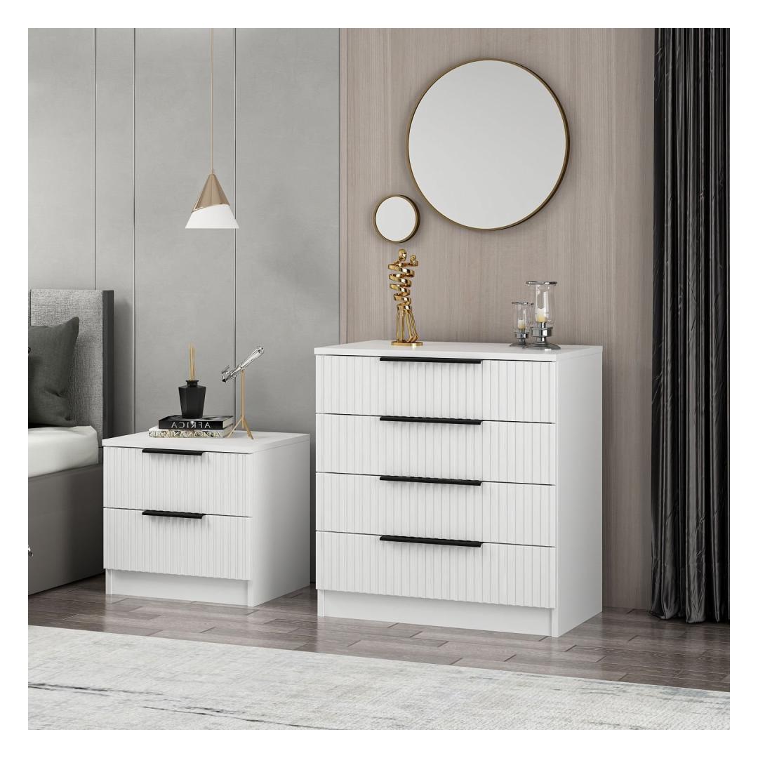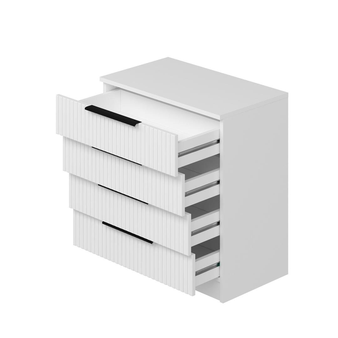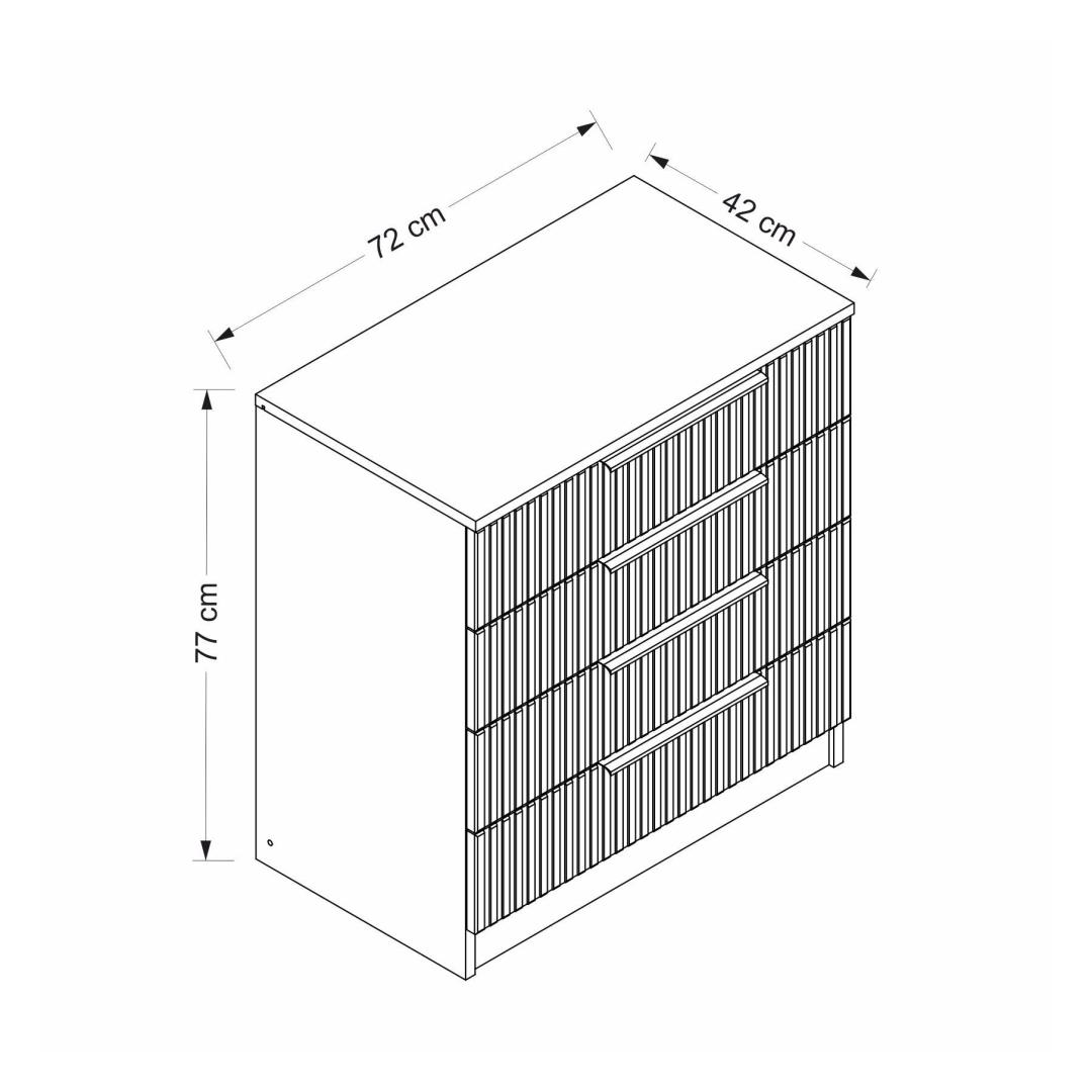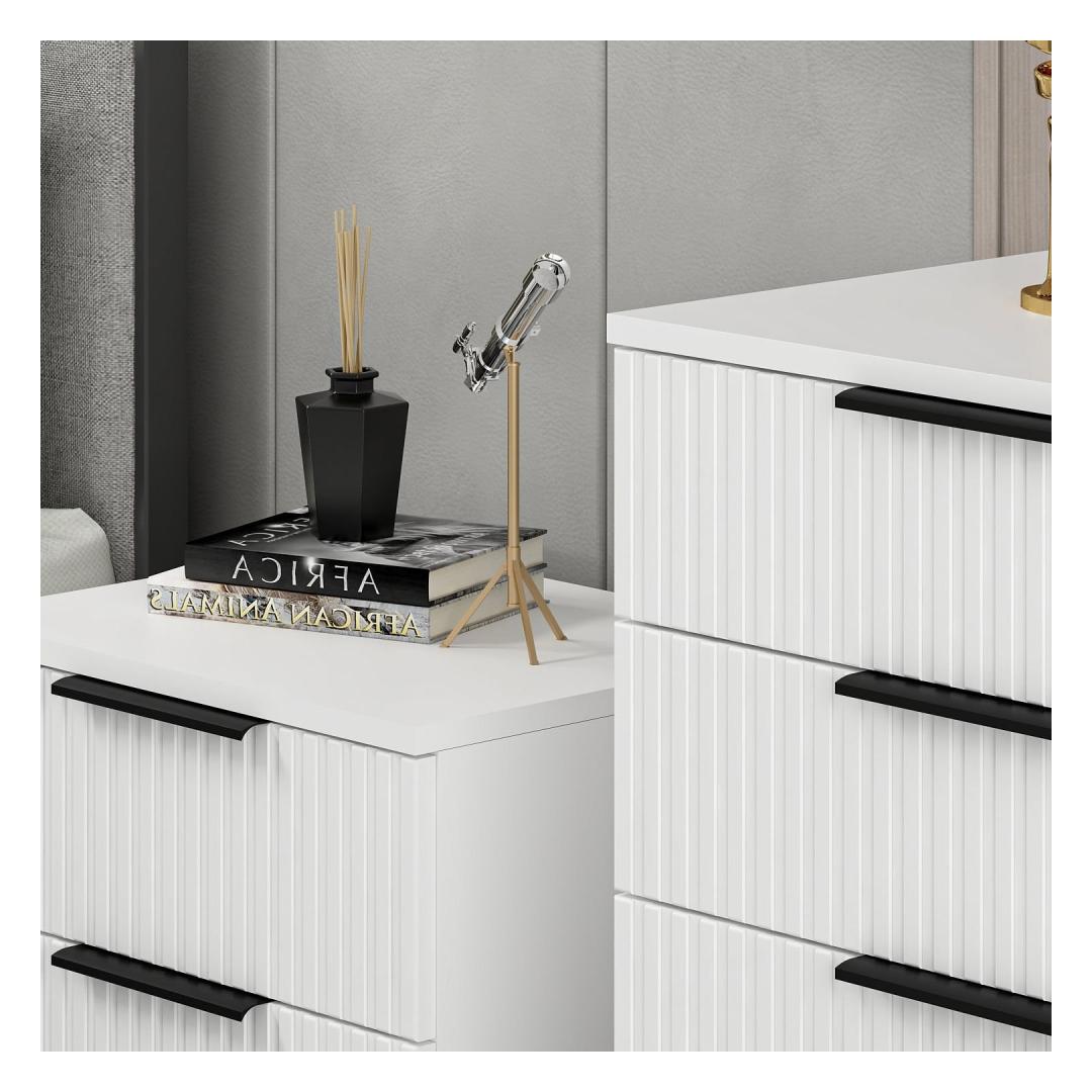 See kummut on varustatud sujuva disainiga, millel on puhtad jooned ja kaunis valge viimistlus, mis täiendab igasugust magamistoa sisustust. 18 mm paksune puitlaastplaat tagab vastupidavuse ja pikaealisuse, nii et saate sellest kummutist aastaid rõõmu tunda.
