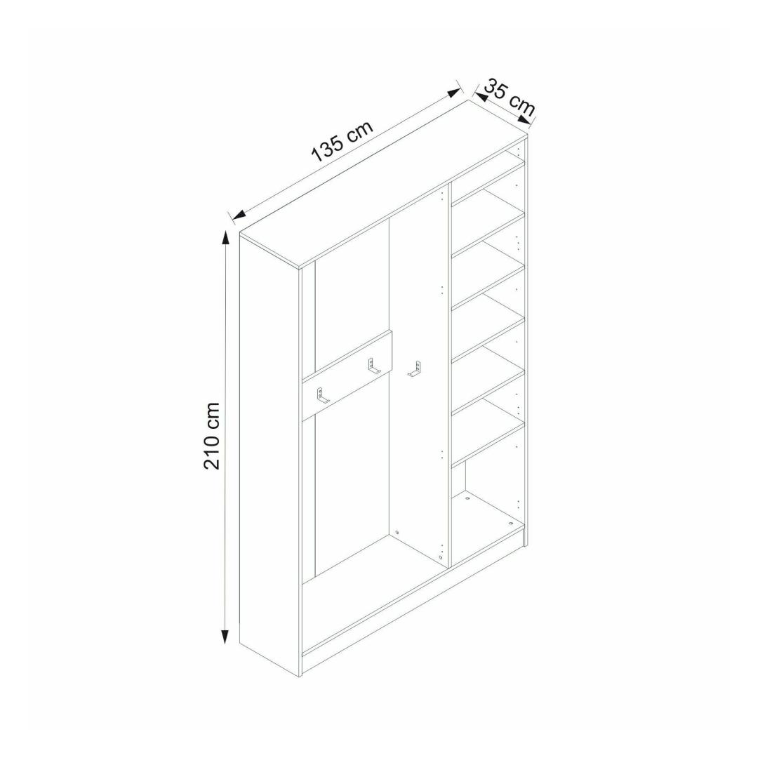Jätke hüvasti segadusega sissekäikudega ja tervitage korrapära meie koridoride stendiga. See on varustatud rohke hoiuruumiga ja pakub ideaalset lahendust, et hoida oma hädavajalikud asjad käeulatuses. Riputage oma mantlid, sallid ja mütsid tugevate konksude külge, samal ajal kui avarad riiulid pakuvad mugavat kohta kingade, kottide ja muude aksessuaaride hoiustamiseks.