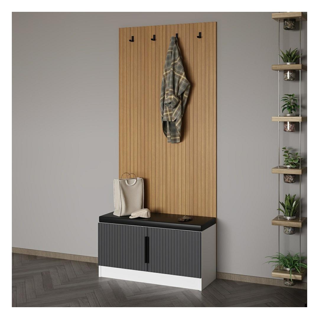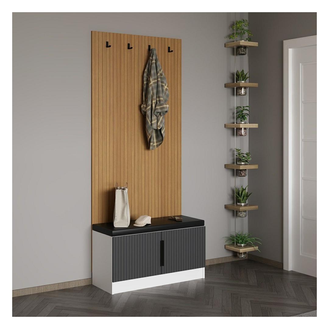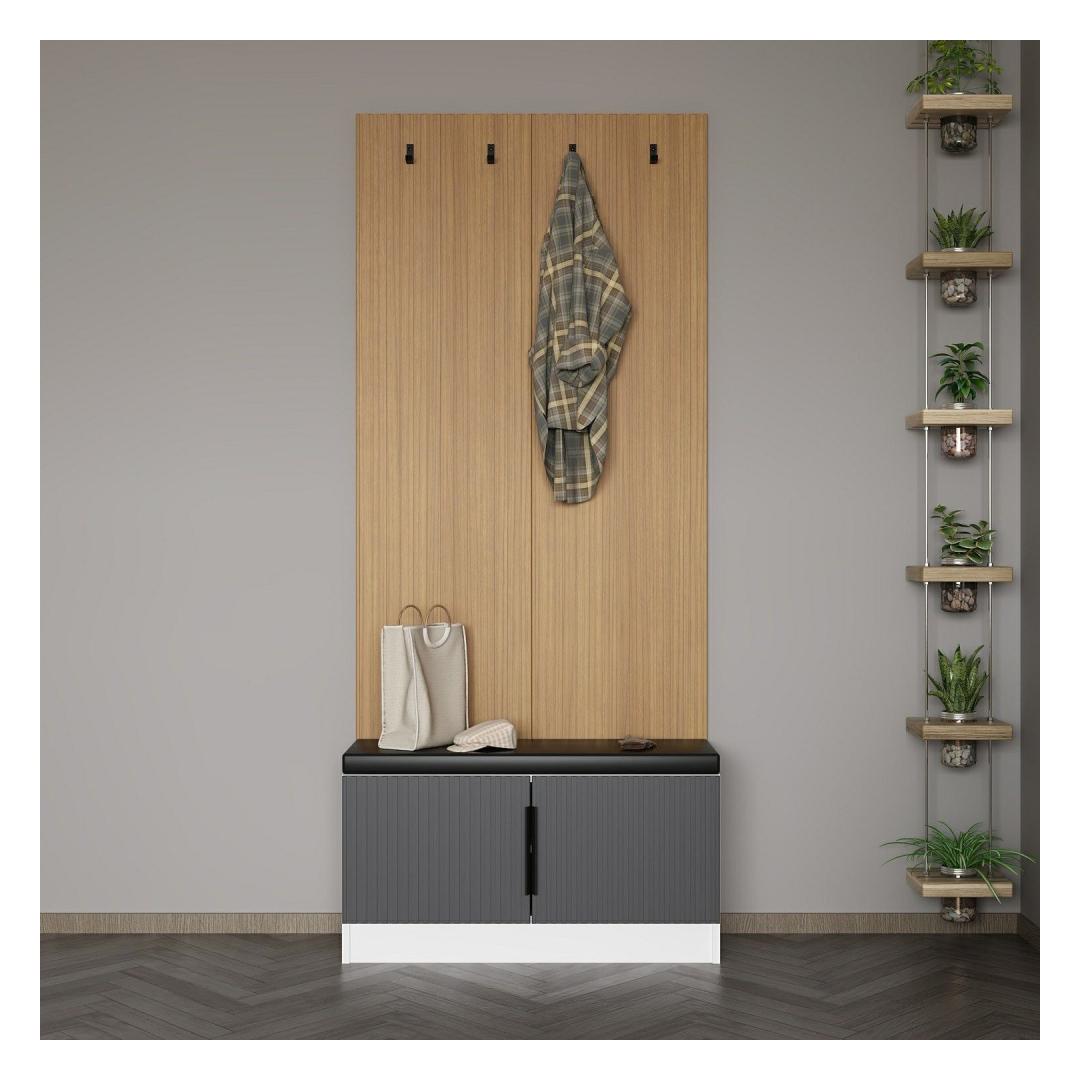 Esikoha stendil on lummav antratsiitne värv, mis lisab igale ruumile elegantsust. Selle stiilne ja moodne disain täiendab vaevata mis tahes sisekujundust, muutes selle teie kodu mitmekülgseks täienduseks.