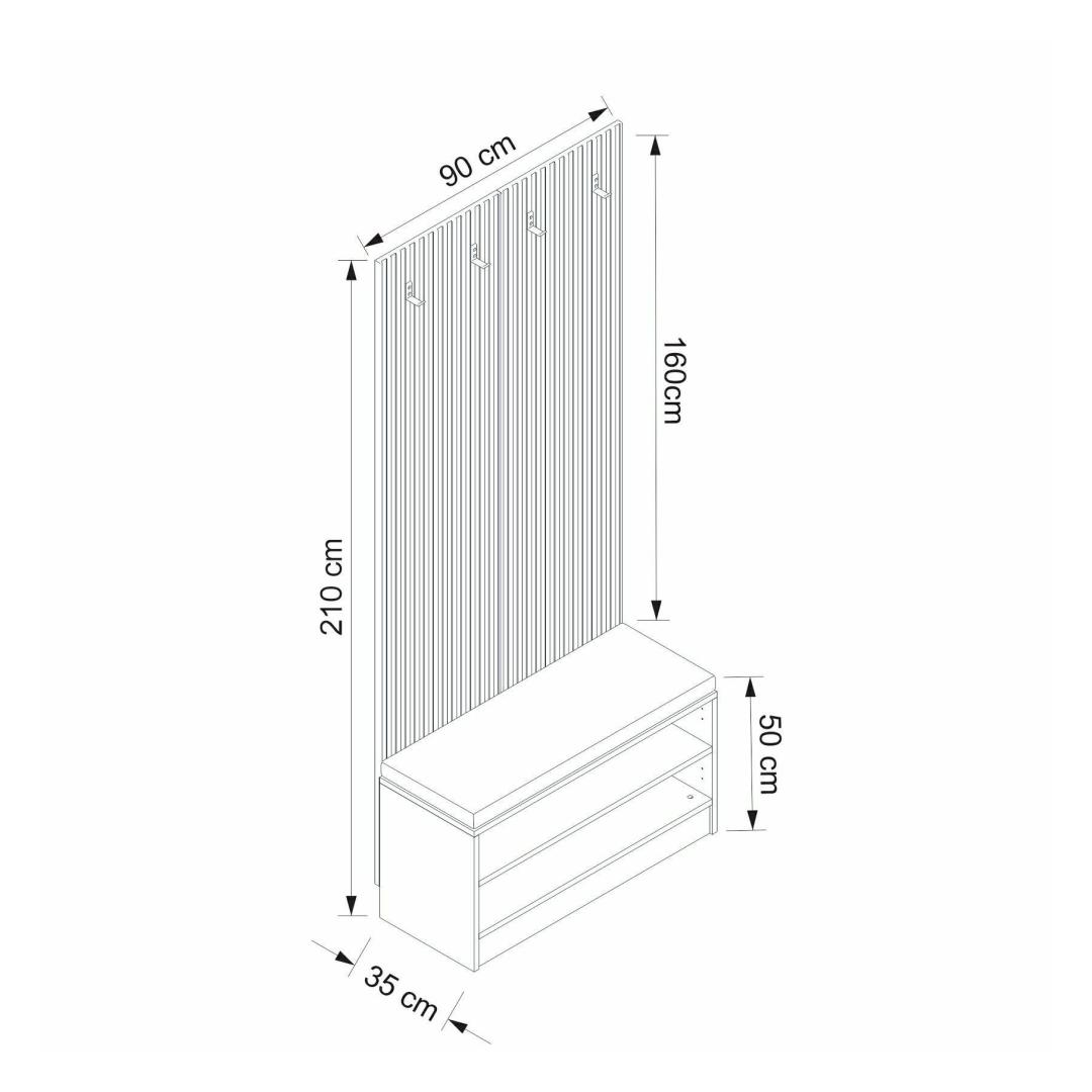 90 cm laiuse, 210 cm kõrguse ja 35 cm sügavusega koridoristend pakub rohkelt hoiuruumi, et hoida teie koridor korrastatuna ja korrastatuna. Alates mantlitest ja mütsidest kuni kottide ja kingadeni leiab kõik oma õige koha, võimaldades teil säilitada korraliku ja korrastatud sissepääsu.