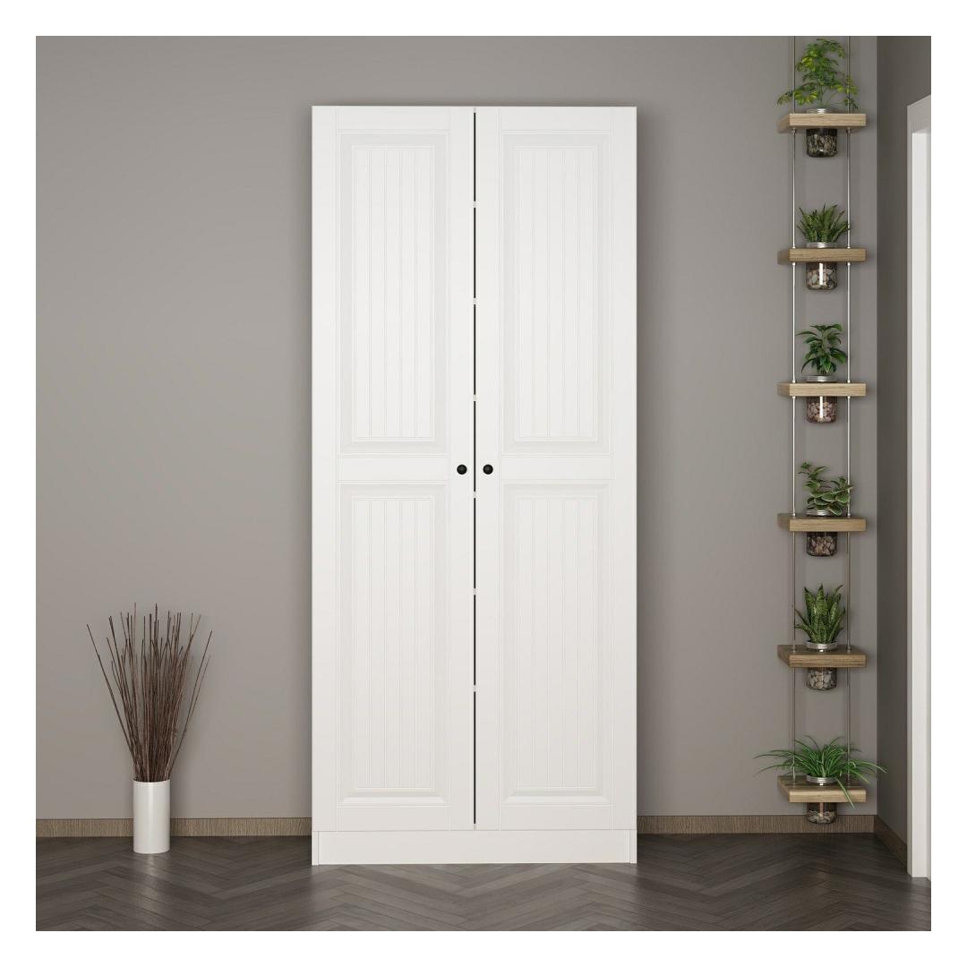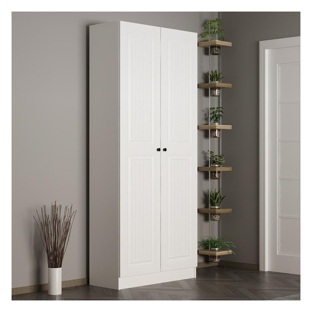 90 cm laiuse, 210 cm kõrguse ja 35 cm sügavusega pakub meie esiku statiiv piisavalt hoiuruumi, et hoida teie esikusse sisenemise korrastatuna ja segadusteta. Alates mantlitest ja mütsidest kuni kingade ja kottideni pakub see stend spetsiaalseid lahtreid, et hoida korrastatult kõiki teie hädavajalikke asju, tagades korrastatud ja kutsuva sissepääsu teie koju.