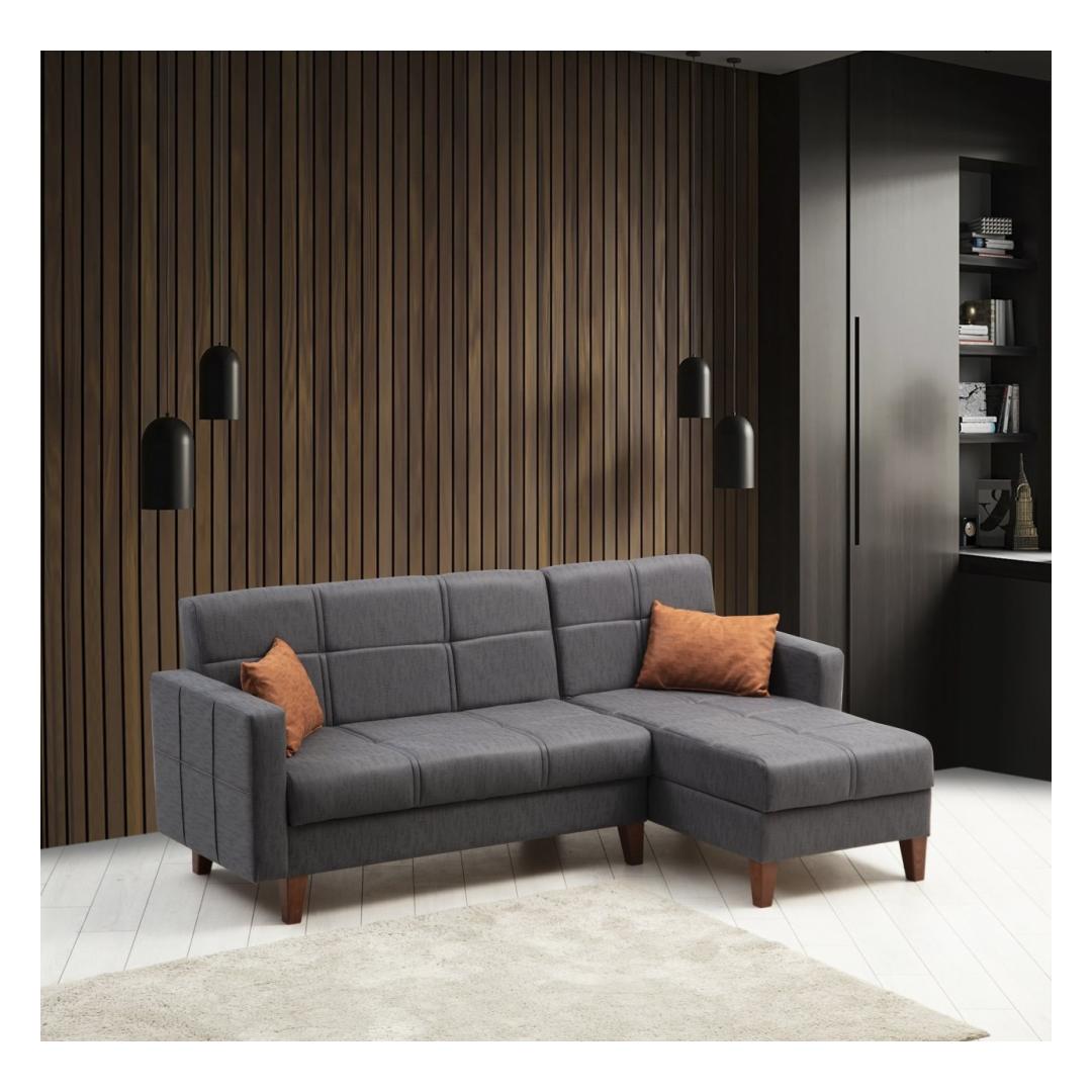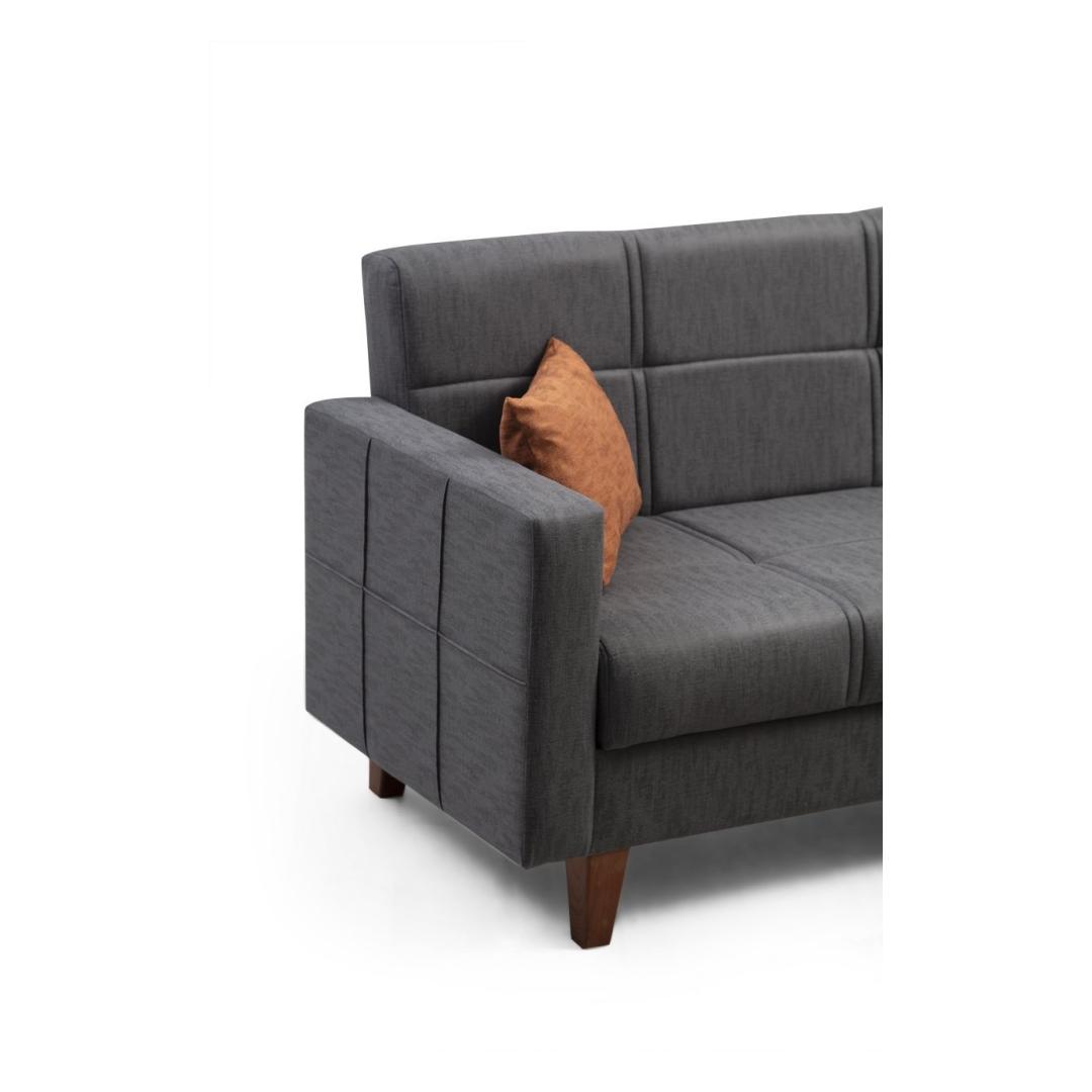 Lisage oma elutuppa elegantsi meie nurgadiivaniga. Lihtne ja moodne disain koos tumehalli värviga täiendab vaevata iga sisustustüüpi. Olenemata sellest, kas teil on kaasaegne või traditsiooniline sisustus, on see diivan-voodi teie toa keskpunktiks, tehes julge avalduse.