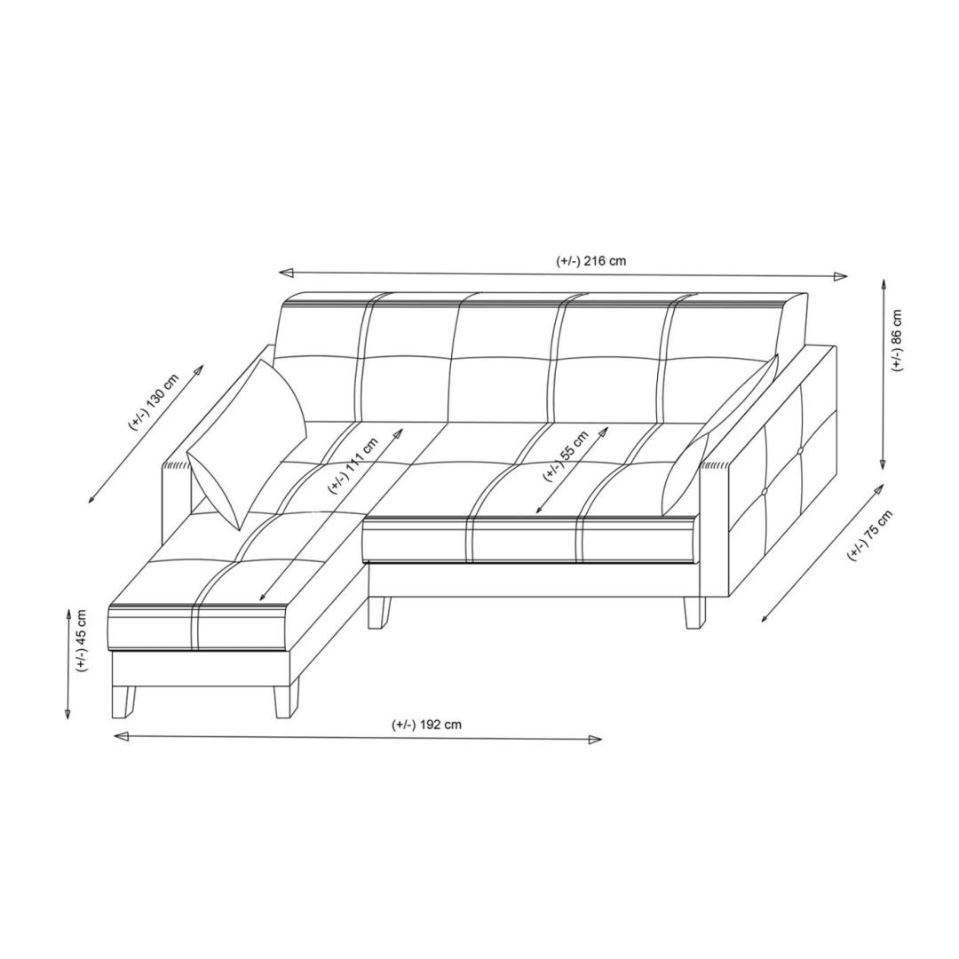 • Laius: 216 cm, kõrgus: 86 cm, sügavus: 130 cm.