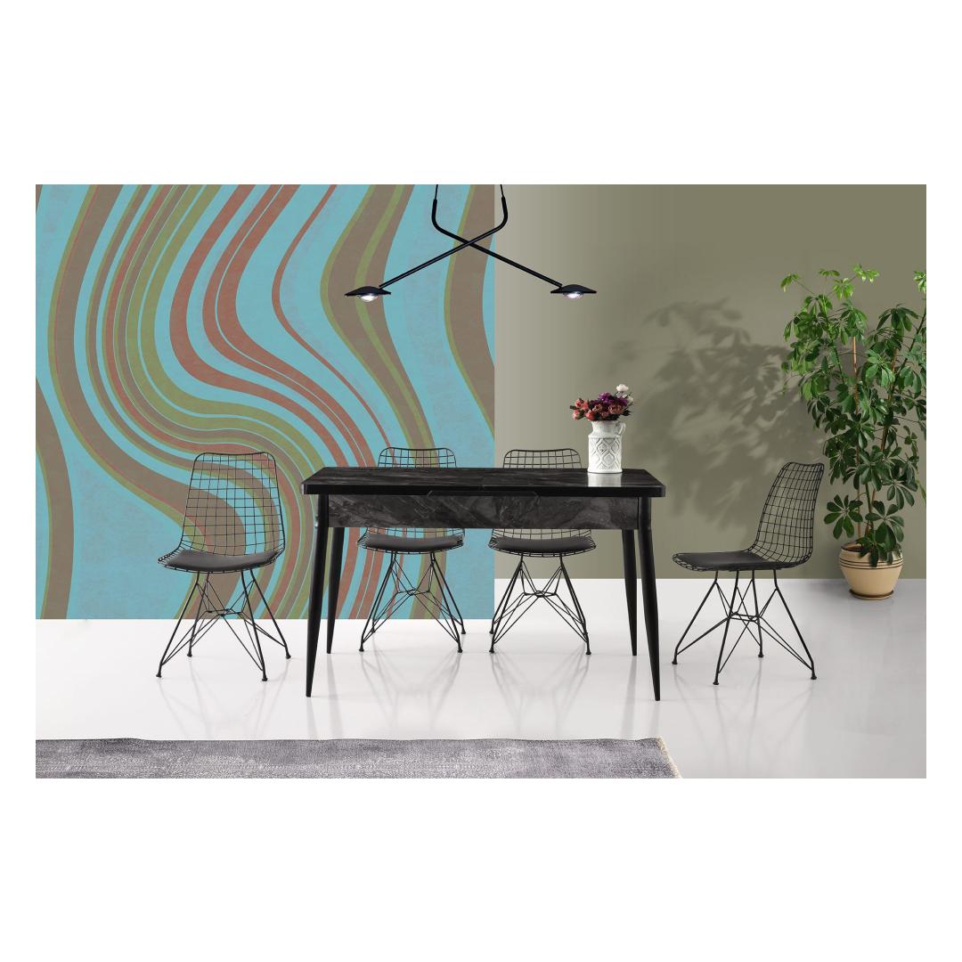 Muuda oma eluruum selle hämmastava toolikomplektiga. Valmistatud 100% metallraamist ja luksuslikest nahkistmetest, kiirgavad need toolid elegantsi ja rafineeritust. Sujuv disain ja must värv teevad neist ideaalse lisandi igasse kaasaegsesse või uudsete teemadega ruumi.