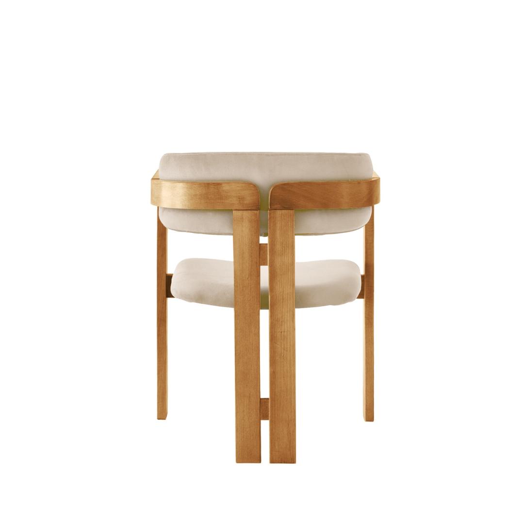 Selle tooli iste ja seljatugi on polsterdatud luksusliku sametkangaga, mis lisab teie eluruumile külluslikkust. Kanga pehme ja pehme tekstuur paneb teid tundma end nagu kuninglik, samas kui tugev vineerist raam tagab vastupidavuse ja pikaealisuse.