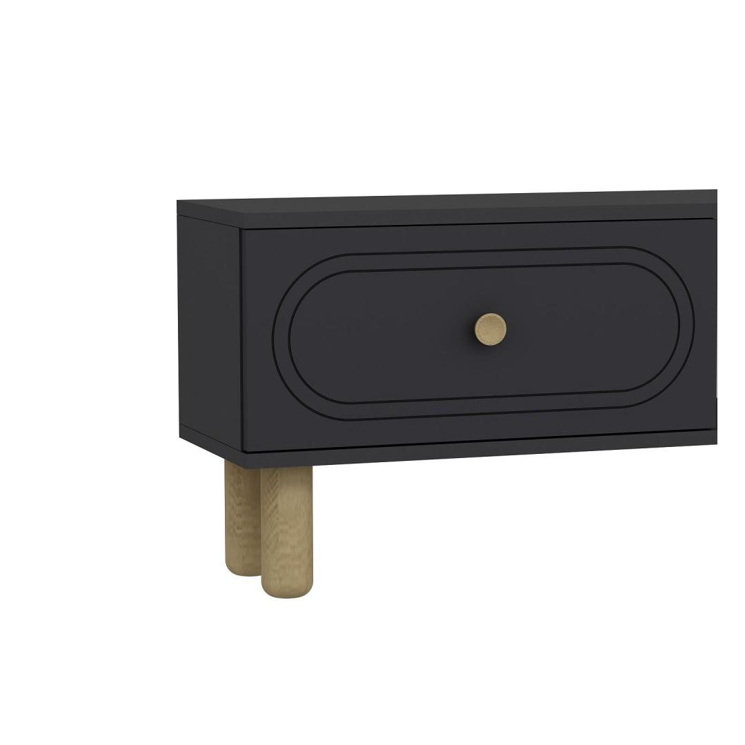 Valmistatud 18mm paksusest melamiinkattega puitlaastplaadist, on see TV-alus loodud kestma. Tugev konstruktsioon tagab, et sinu TV ja muud elektroonikaseadmed on ohutult toetatud, samas kui antriitvärv lisab sinu ruumile elegantsi.