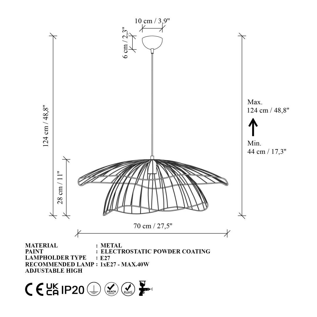 • Varju suurus: Ø70 h:28 cm