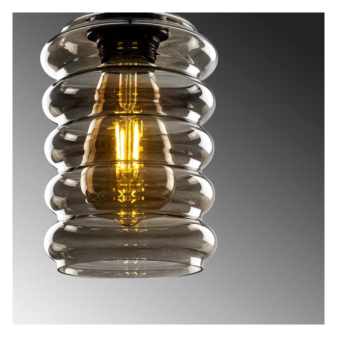 Lühtrile on lisatud lummav klaasist kork, mis lisab selle robustsele välimusele elegantsi. Oma suitsuvärviga täiendab see meistriteos vaevata iga interjööri, luues lummava fookuspunkti, mis jätab teie külalised aukartusse.
