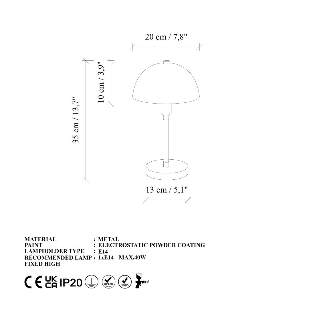 • Lampe sokli suurus: Ø20 h:10 cm