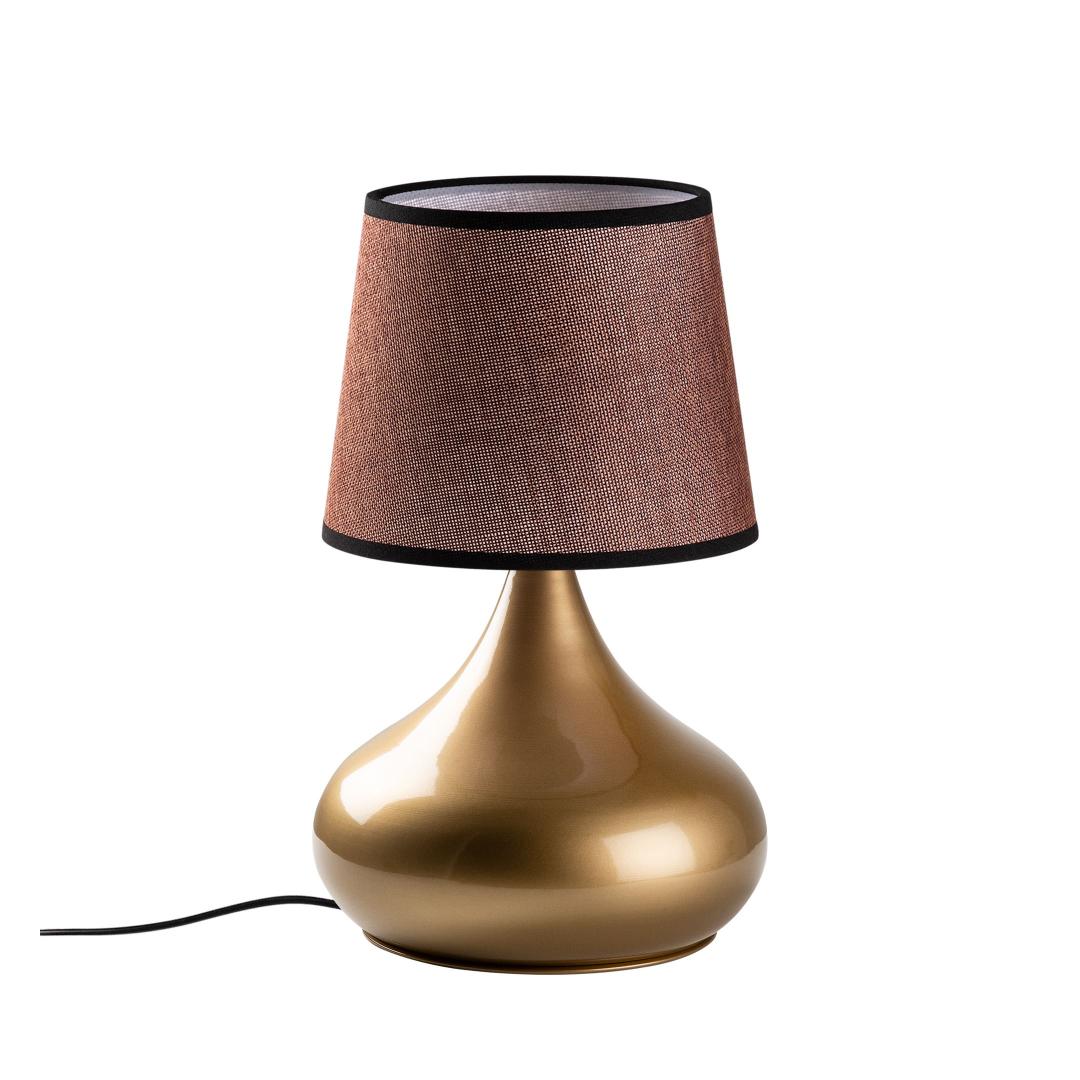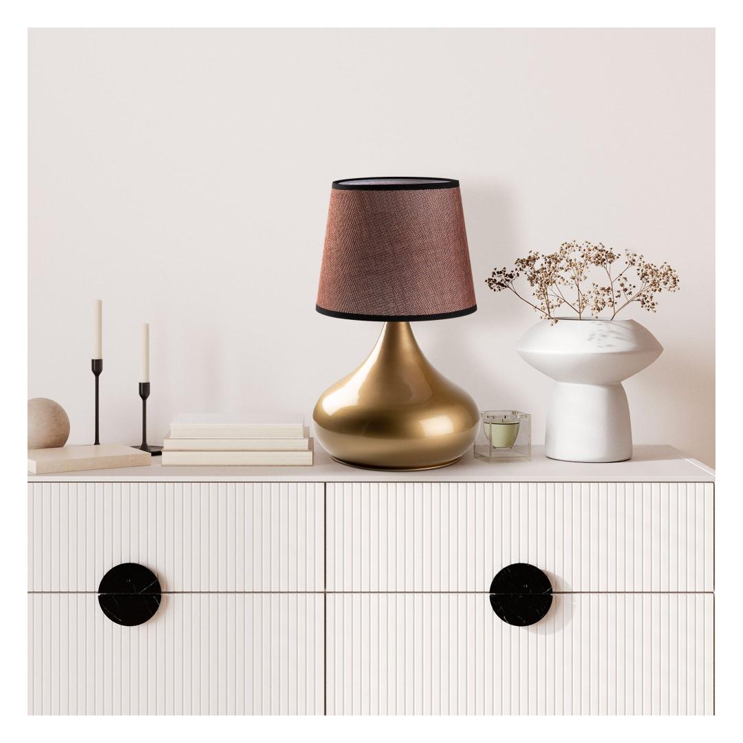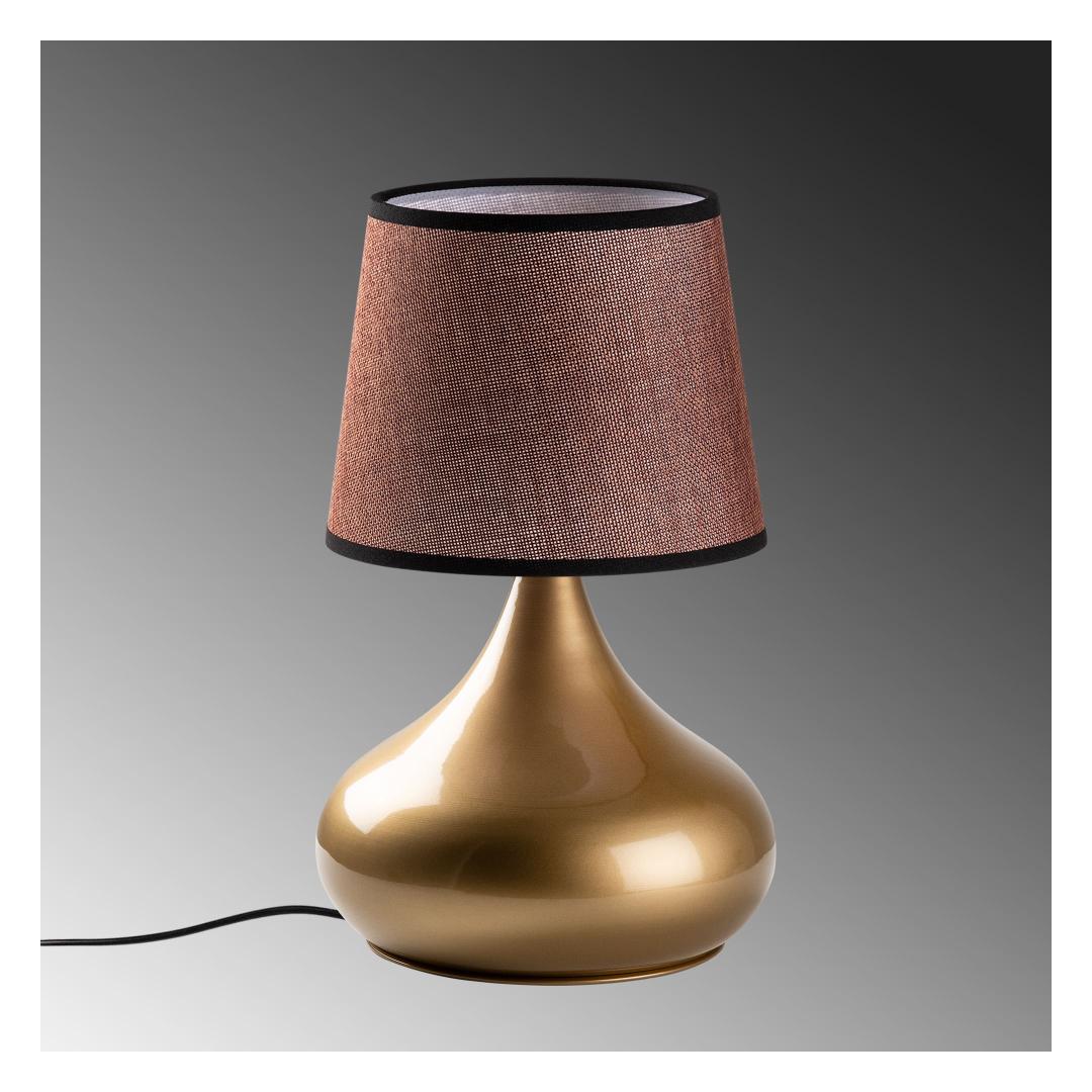 Valgustage oma ruumi elegantsi ja stiiliga meie hämmastava metallkorpusega laualambiga. Kuldse ja pruuni värvi kombinatsioon lisab igasse ruumi natuke rafineeritust, samas kui kangast kuppel pehmendab valgust, luues sooja ja kutsuva atmosfääri.