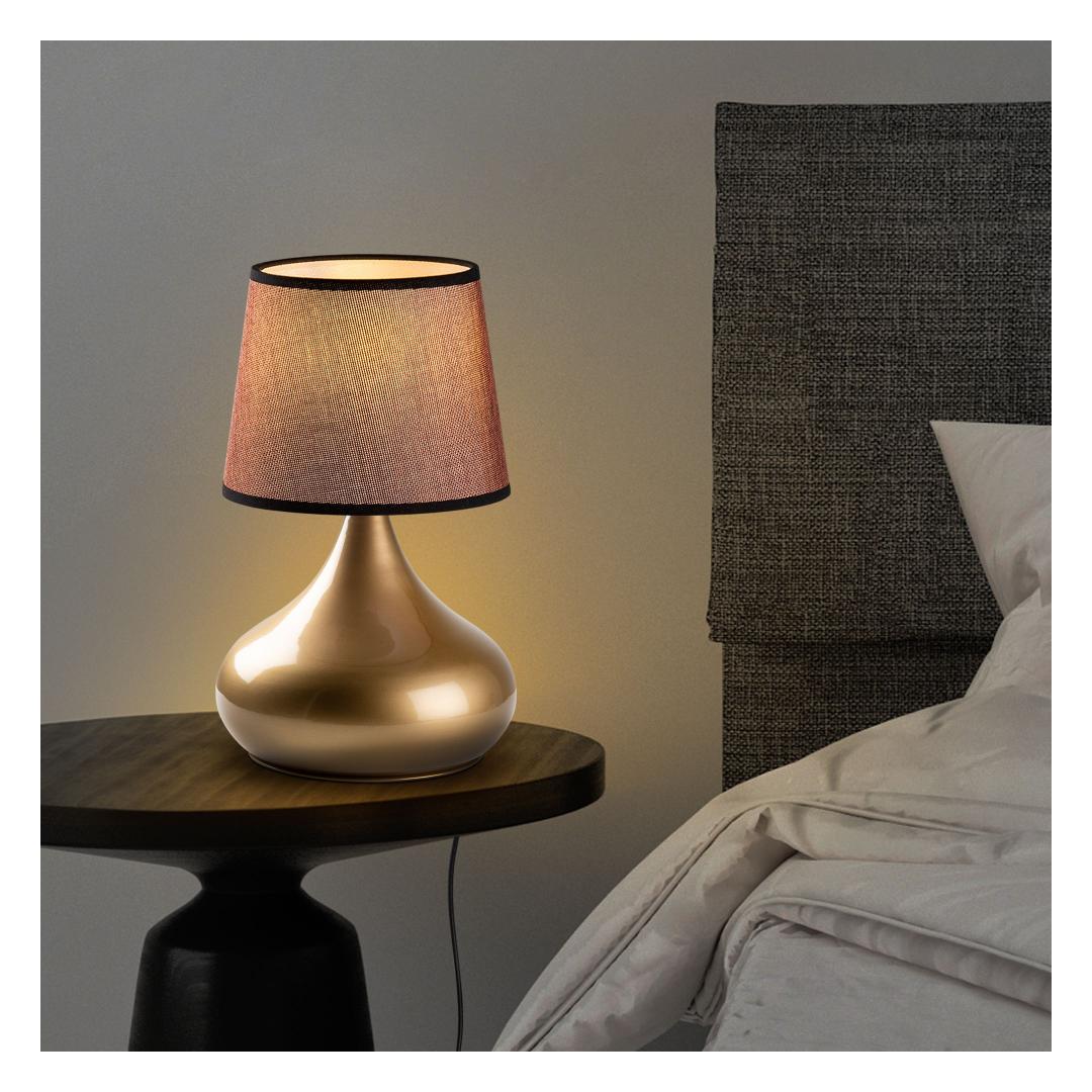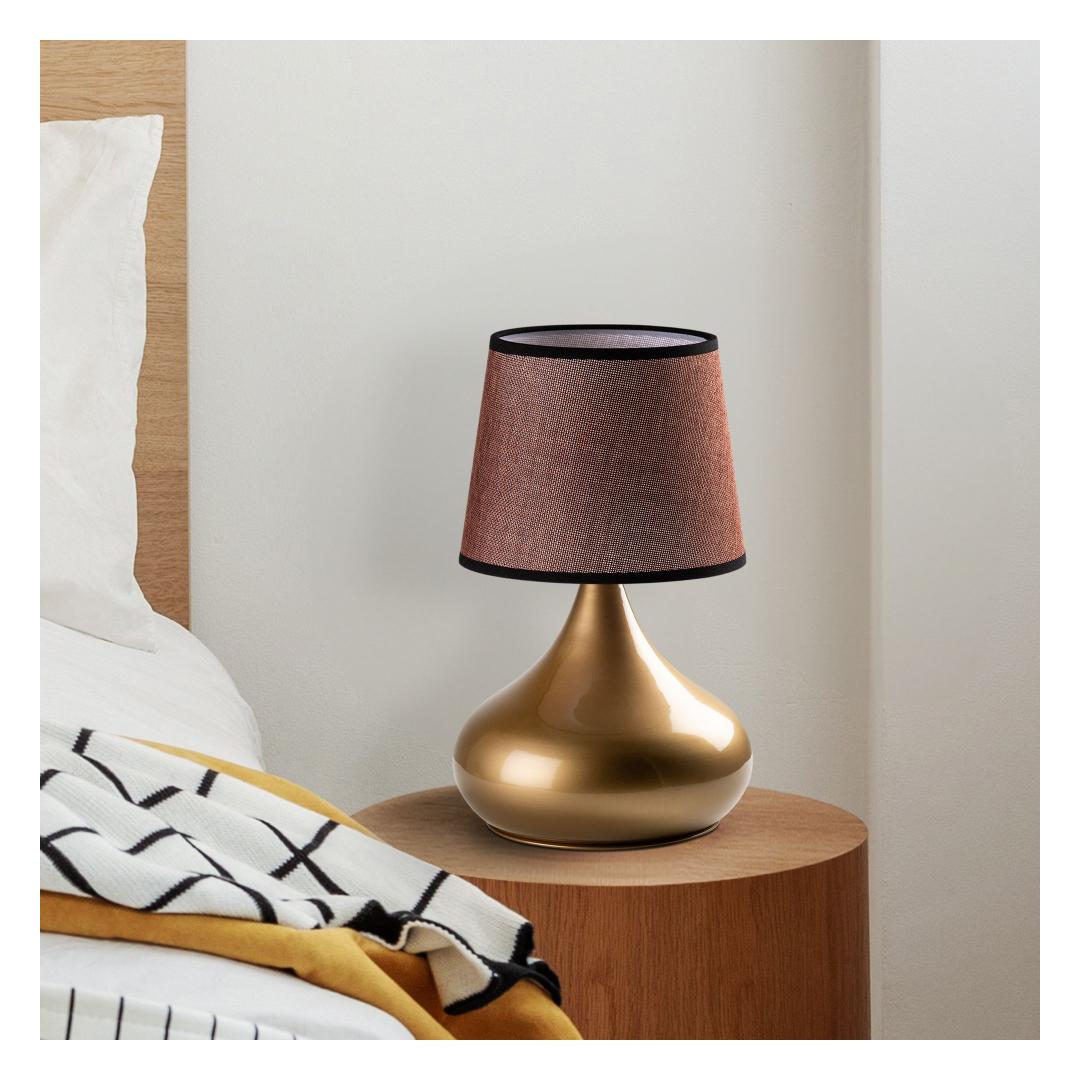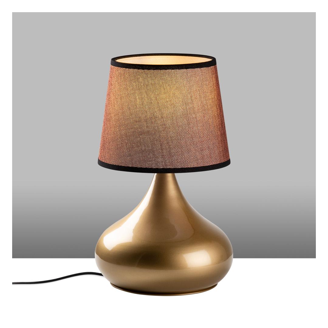 Valgustage oma ruumi elegantsi ja stiiliga meie hämmastava metallkorpusega laualambiga. Kuldse ja pruuni värvi kombinatsioon lisab igasse ruumi natuke rafineeritust, samas kui kangast kuppel pehmendab valgust, luues sooja ja kutsuva atmosfääri.