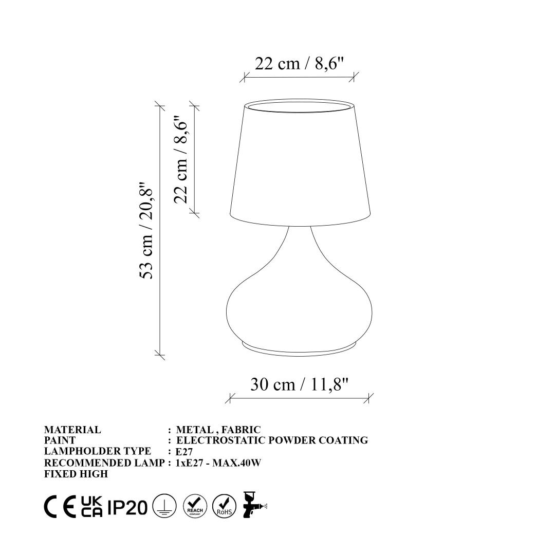 See laualamp ei ole mitte ainult valgusallikas, vaid ka statement-tükk, mis tõstab teie kodu sisustust. Sleek metallkorpus kiirgab modernsust, samas kui klassikaline kangast kuppel lisab ajatu võlu.