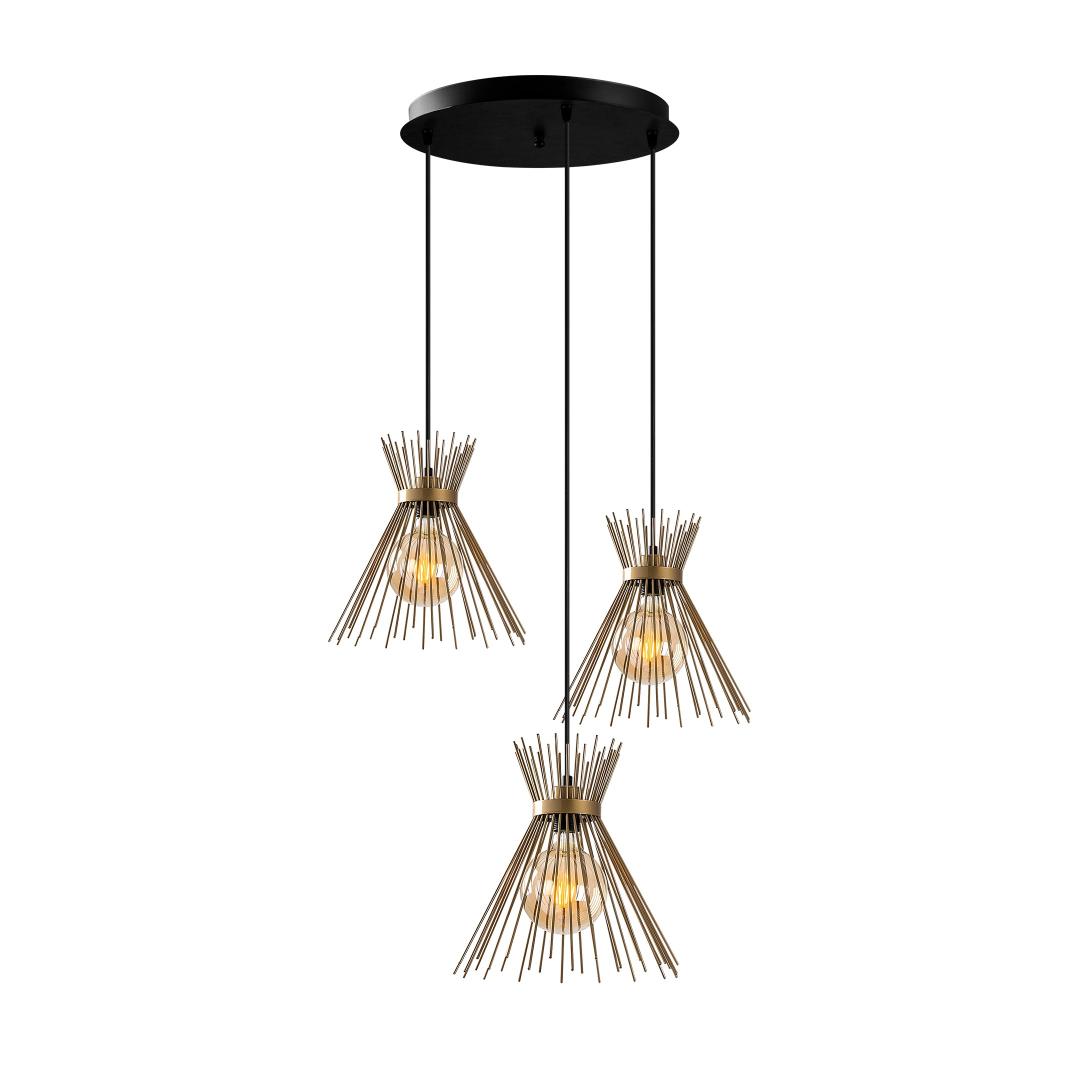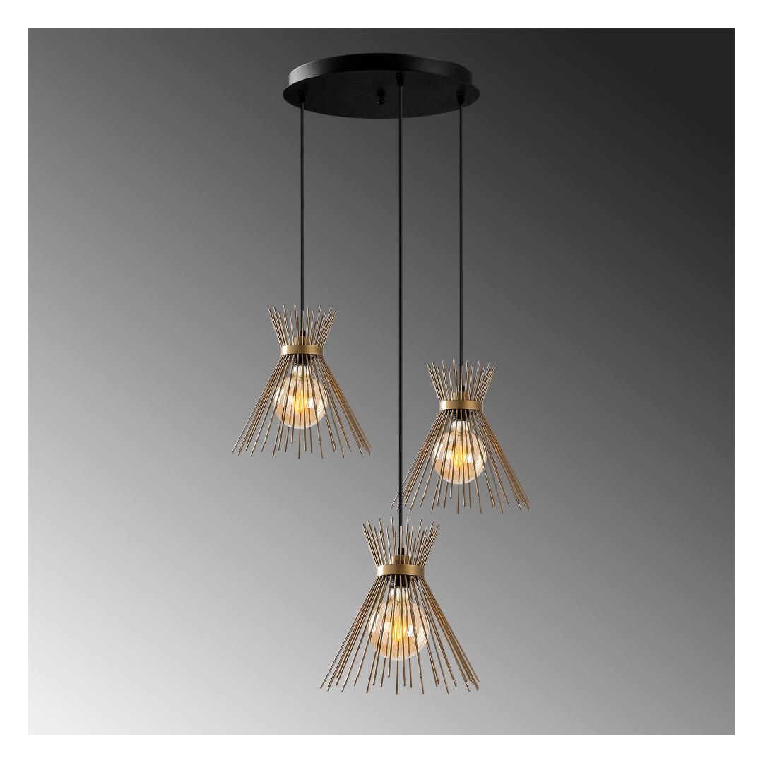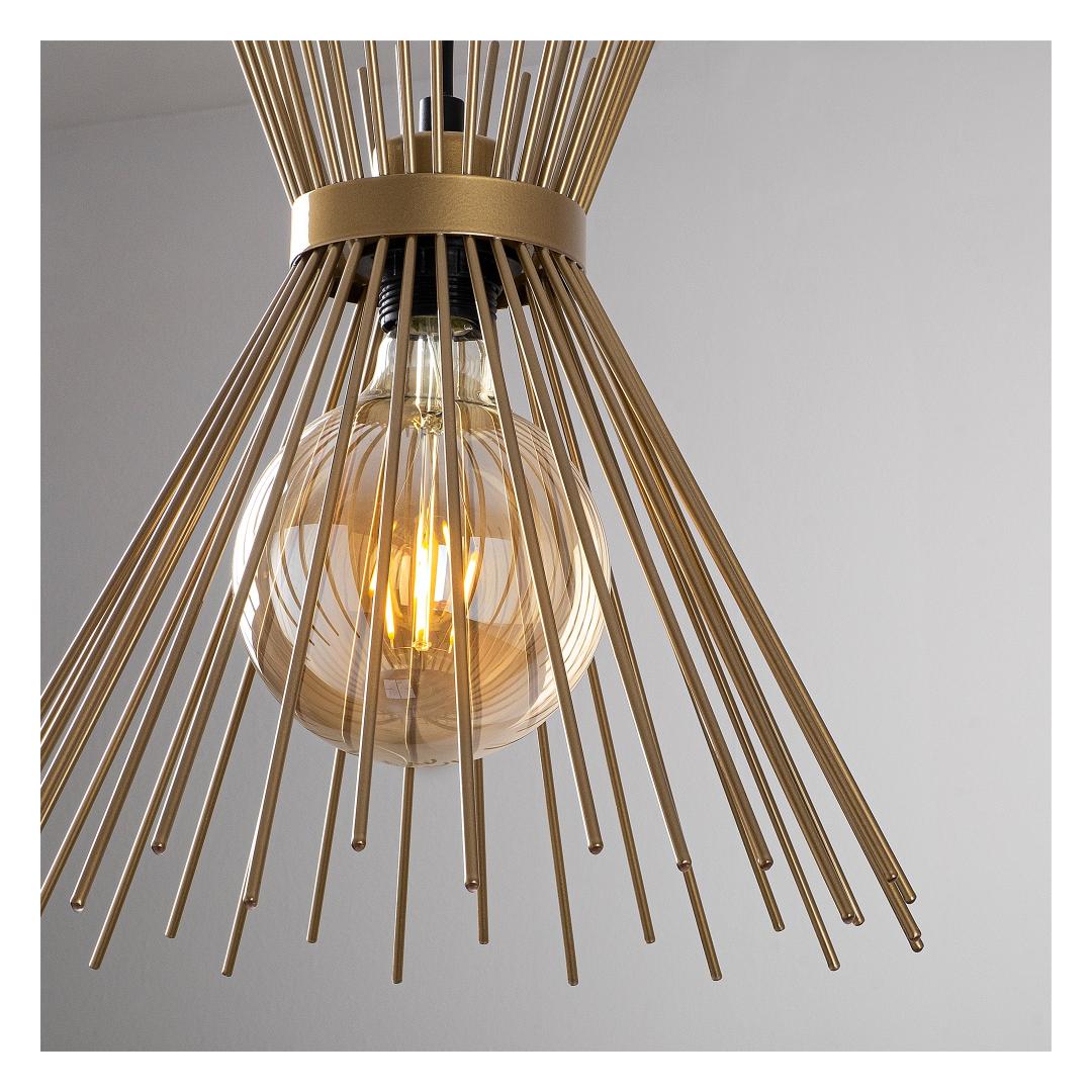Meie lühtril on tugev metallist korpus, mis tagab vastupidavuse ja pikaealisuse. Põneva kuldse värviga sile ja lihvitud viimistlus lisab luksuslikku puudutust, mistõttu sobib see ideaalselt nii kaasaegsetesse kui ka traditsioonilistesse interjööridesse. Laske kulla säraval kuma valgustada oma ruumi, luues sooja ja kutsuva atmosfääri.