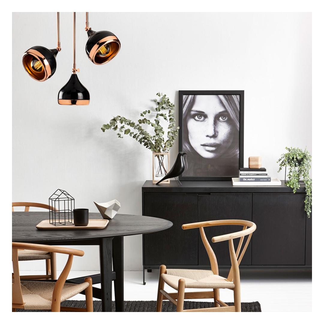 Musta ja vase värvi kombinatsioon meie lühtris loob lummava visuaalse kontrasti. Siledat musta viimistlust lisab modernsust, samal ajal kui soojad vasksed aktsendid toovad endaga glamuuri ja rafineeritust. See harmooniline segu lisab elegantsi igasse ruumi.